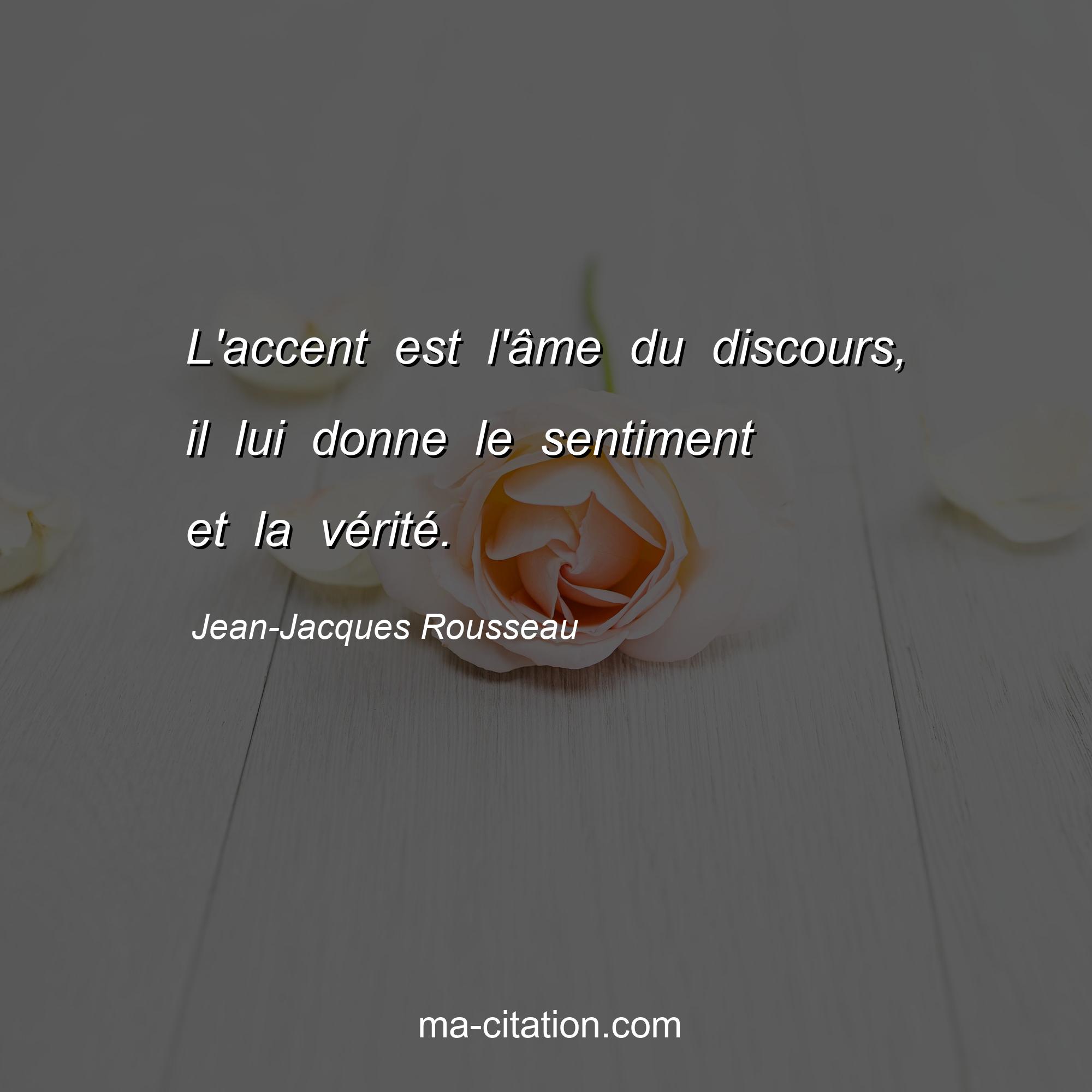 Citation sur la vie de Jean-Jacques Rousseau :L'accent est l'âme du discours, il lui donne le sentiment et la vérité.