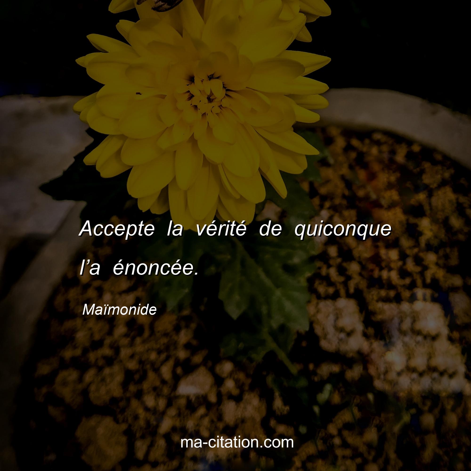 Citation sur la vie de Maïmonide :Accepte la vérité de quiconque l’a énoncée.