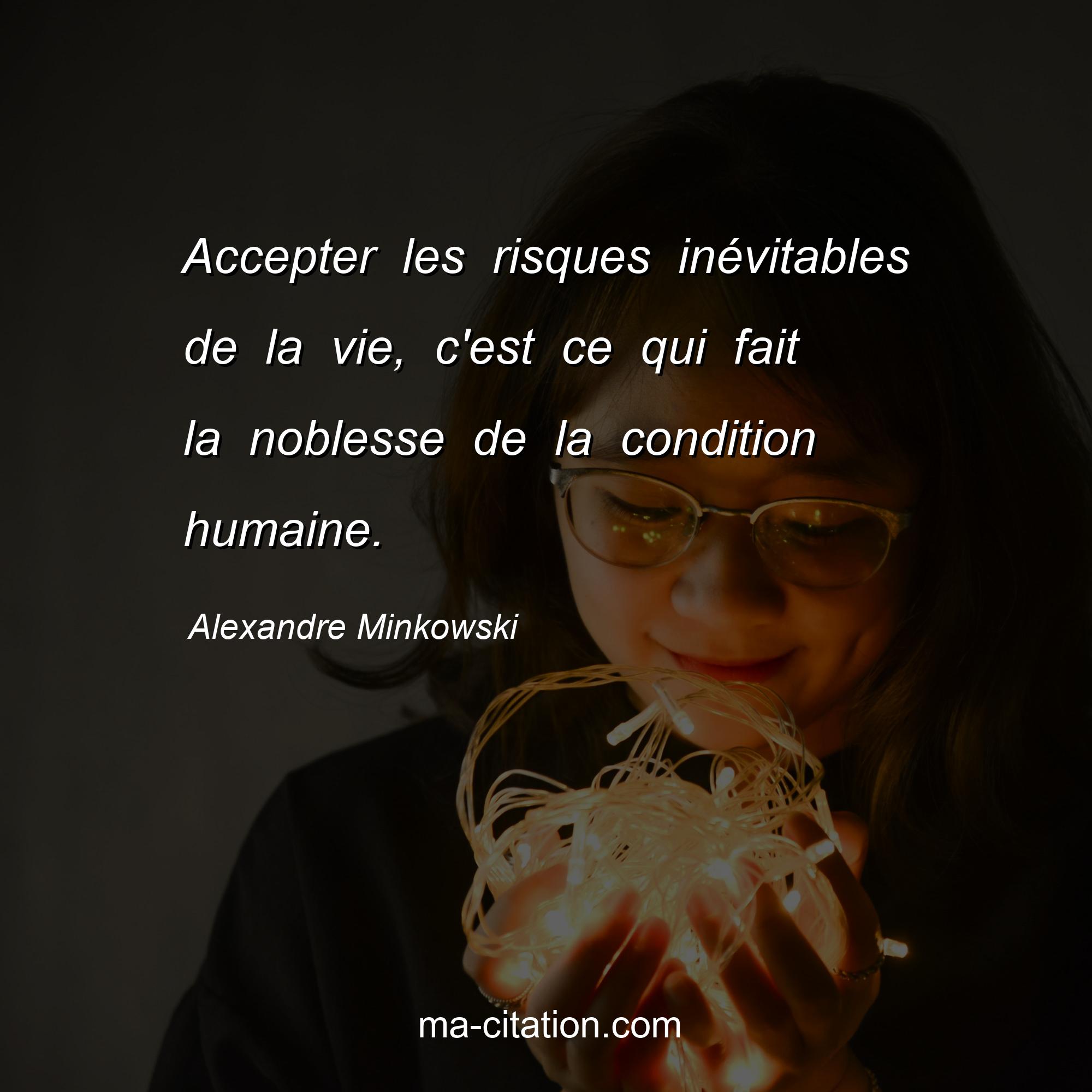 Alexandre Minkowski est l'auteur de la citation sur la vie "Accepter les risques inévitables de la vie, c'est ce qui fait la noblesse de la condition humaine.".