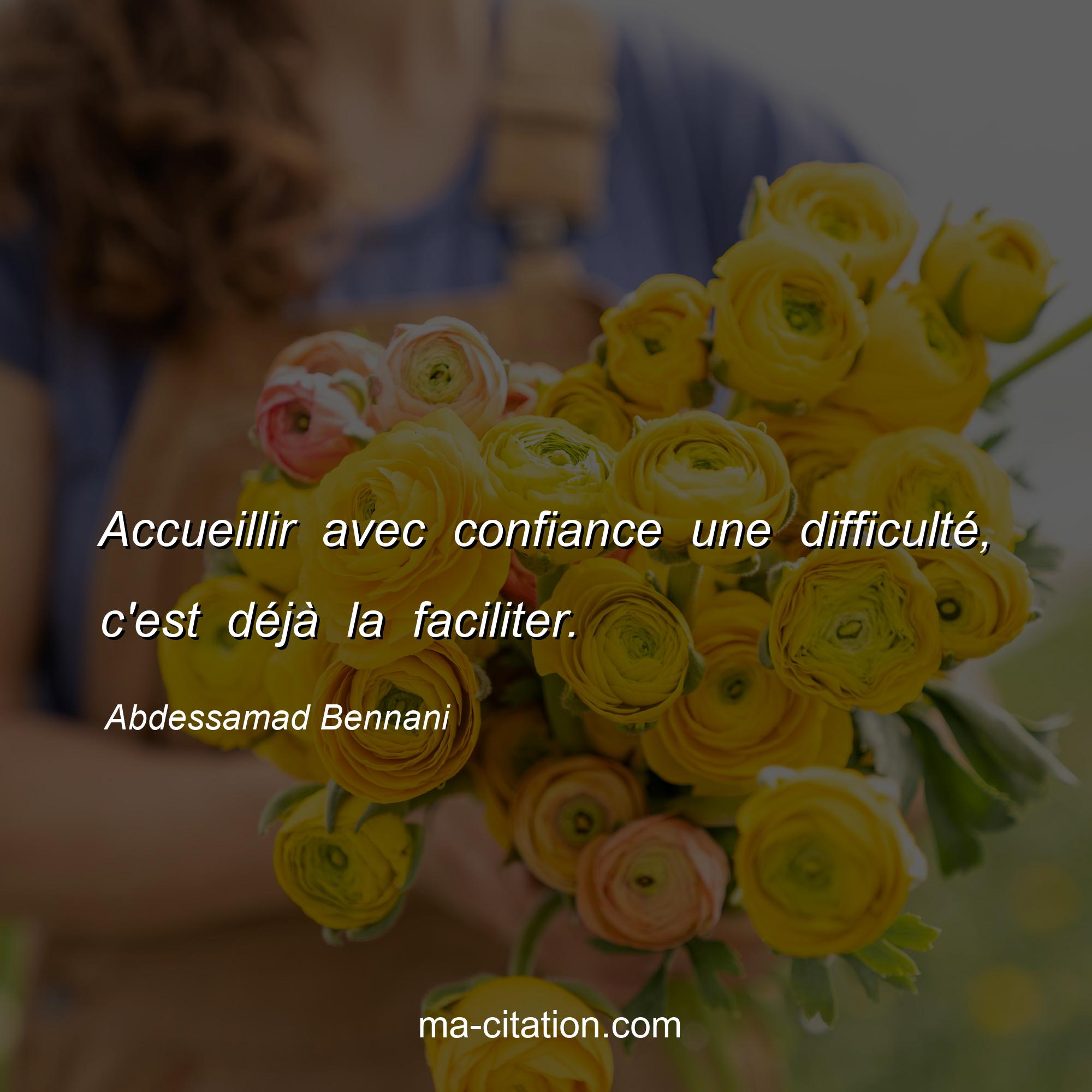 Abdessamad Bennani est l'auteur de la citation sur la vie "Accueillir avec confiance une difficulté, c'est déjà la faciliter.".
