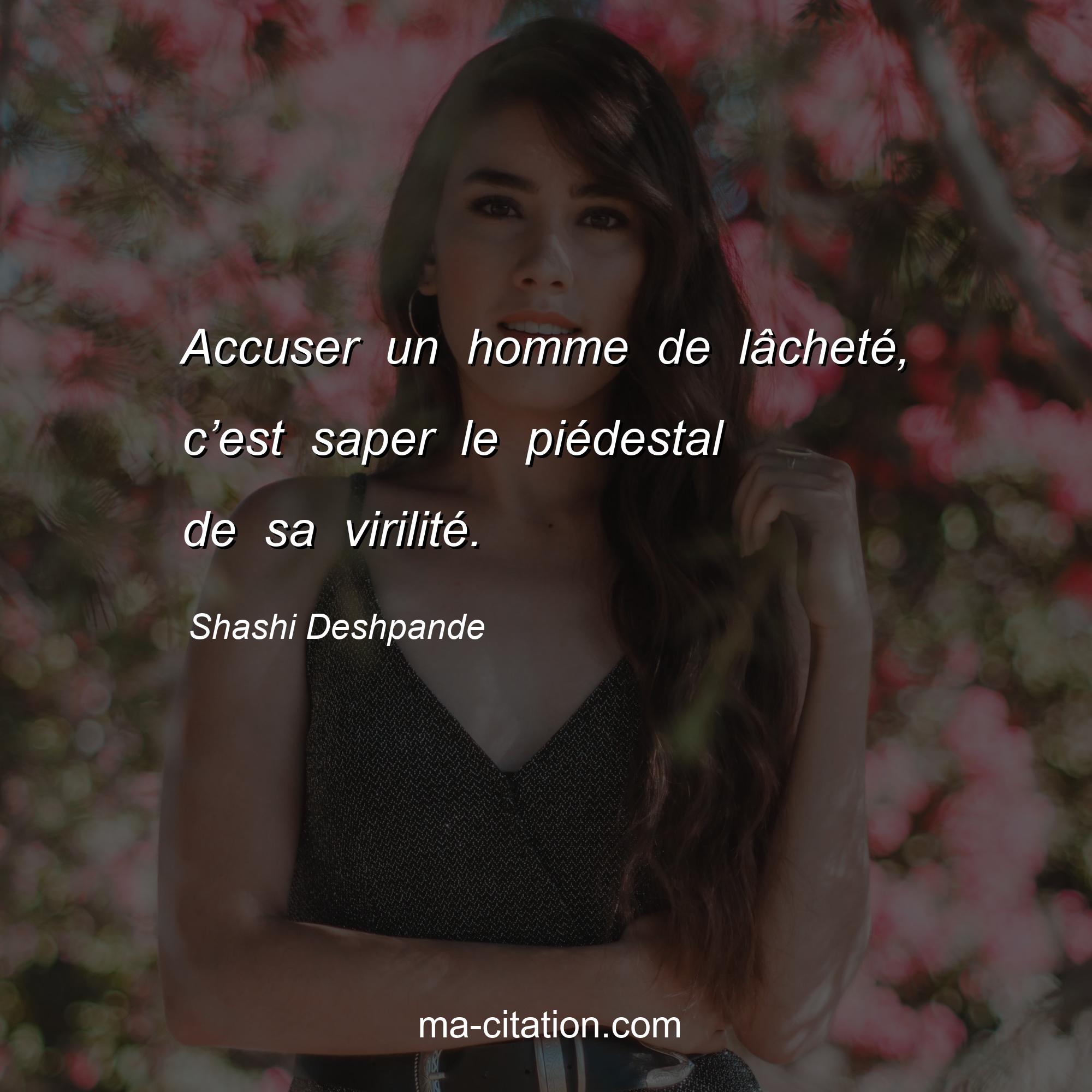 Citation sur la vie de Shashi Deshpande :Accuser un homme de lâcheté, c’est saper le piédestal de sa virilité.