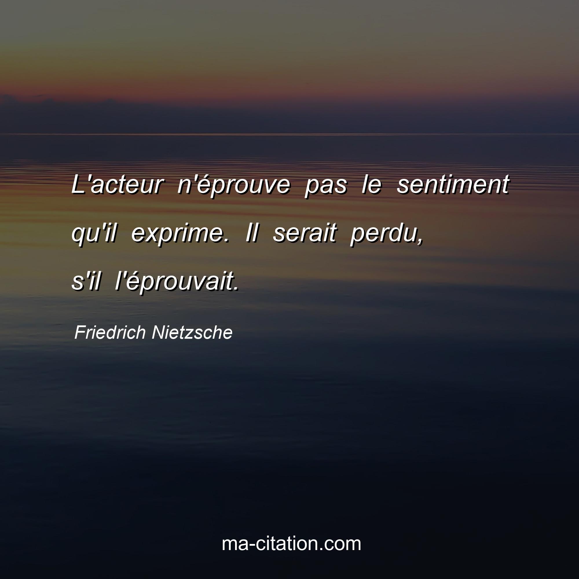 Citation sur la vie de Friedrich Nietzsche :L'acteur n'éprouve pas le sentiment qu'il exprime. Il serait perdu, s'il l'éprouvait.