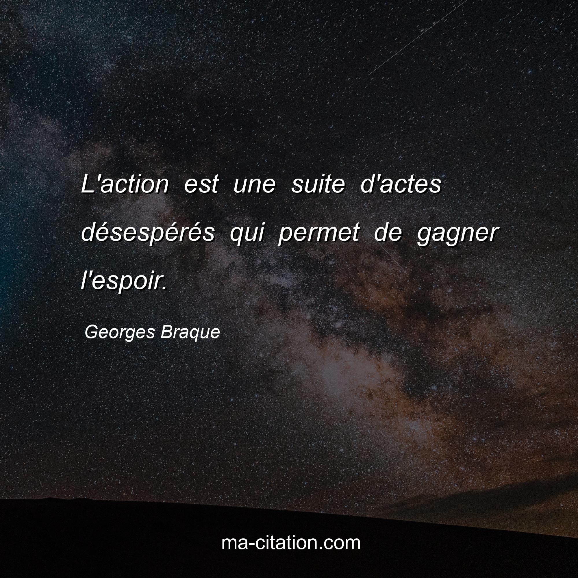 Citation sur la vie de Georges Braque :L'action est une suite d'actes désespérés qui permet de gagner l'espoir.