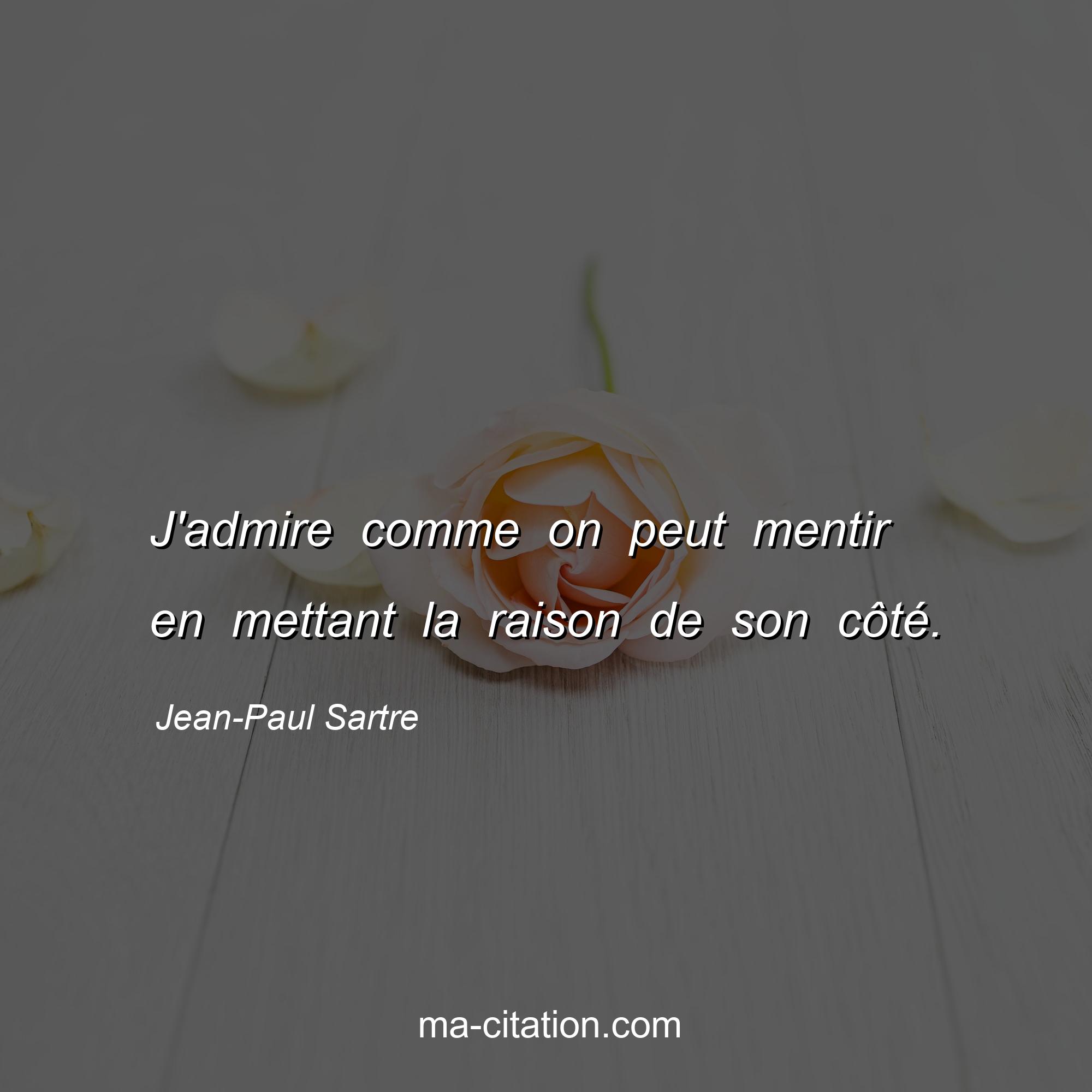 Citation sur la vie de Jean-Paul Sartre :J'admire comme on peut mentir en mettant la raison de son côté.
