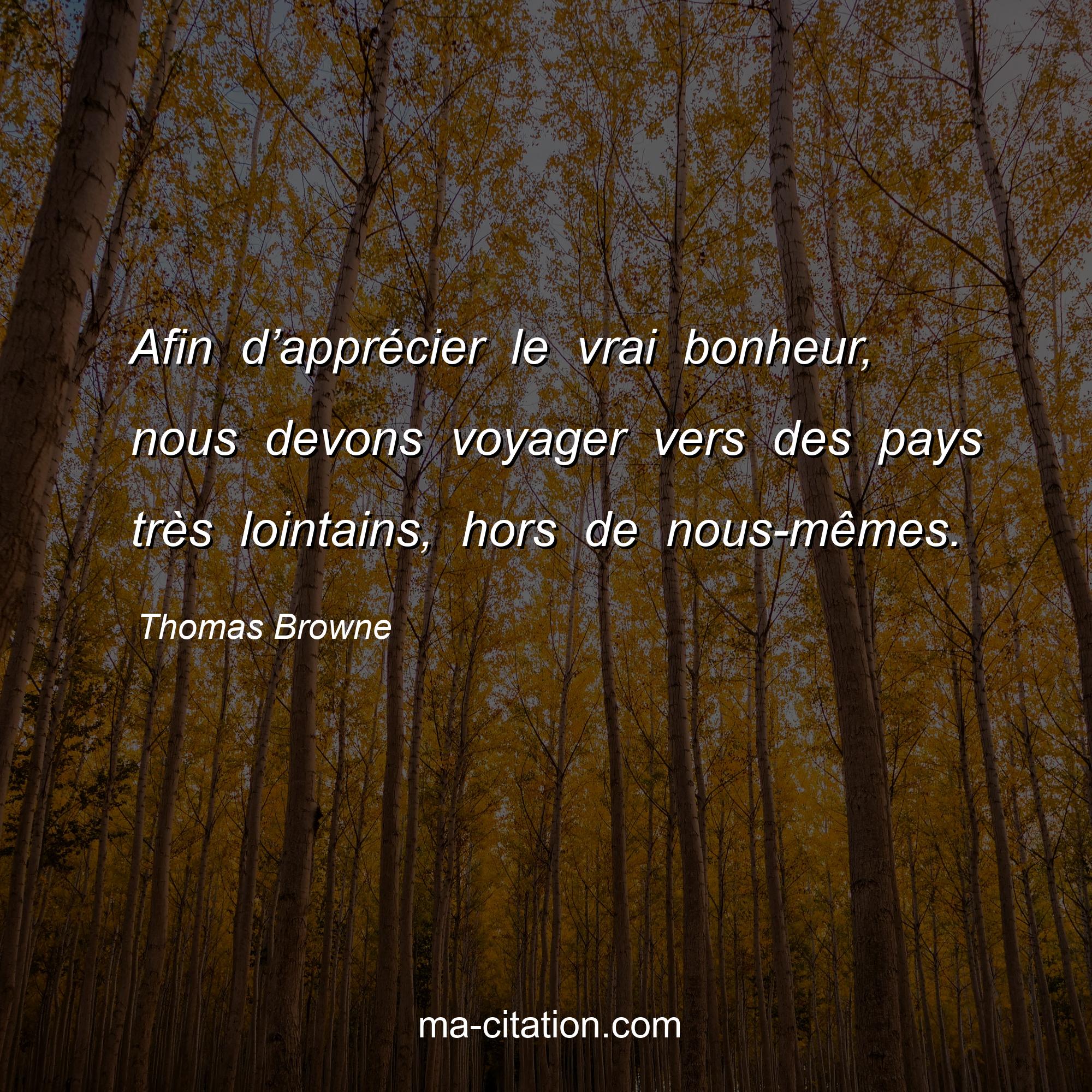 Citation sur la vie de Thomas Browne :Afin d’apprécier le vrai bonheur, nous devons voyager vers des pays très lointains, hors de nous-mêmes.