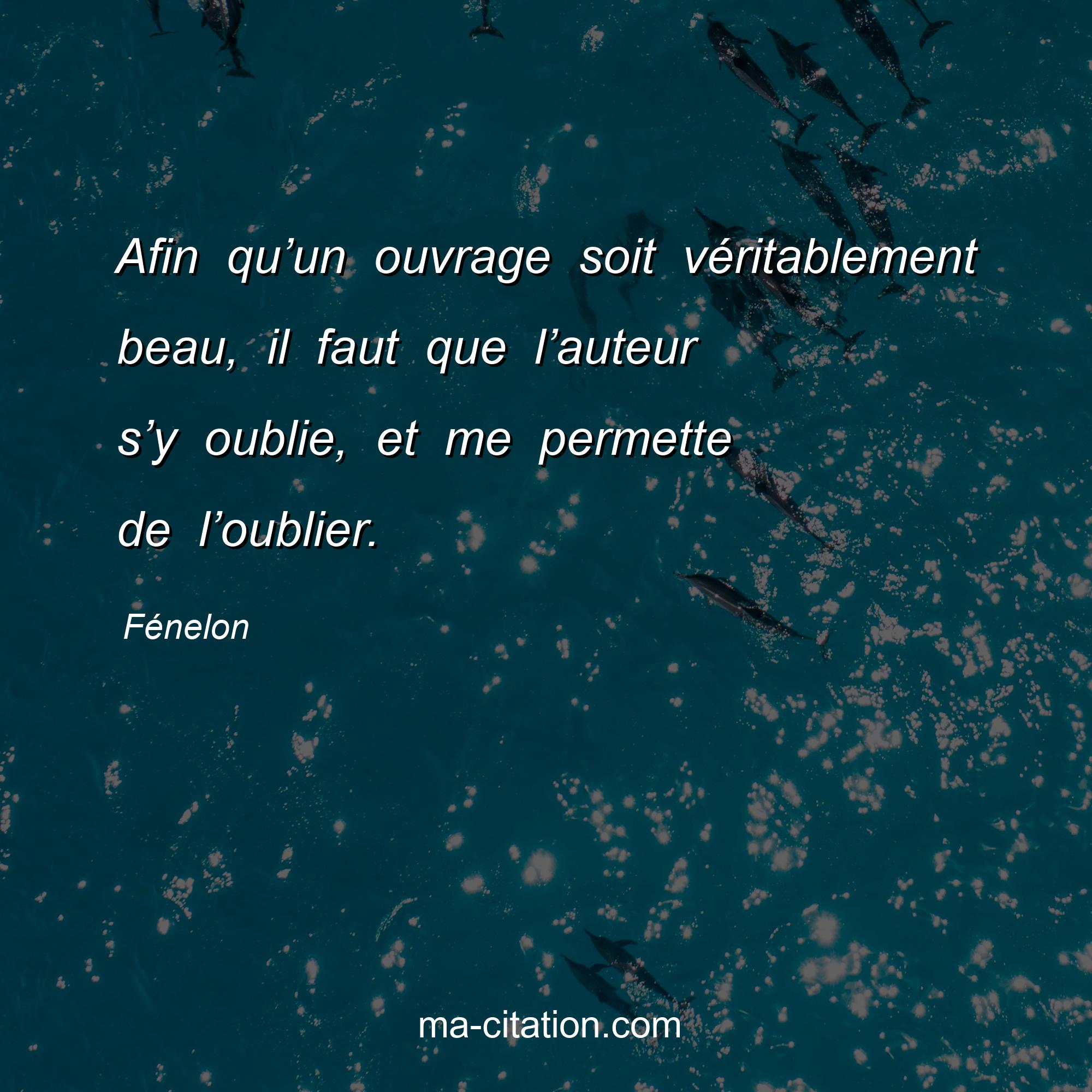 Citation sur la vie de Fénelon :Afin qu’un ouvrage soit véritablement beau, il faut que l’auteur s’y oublie, et me permette de l’oublier.