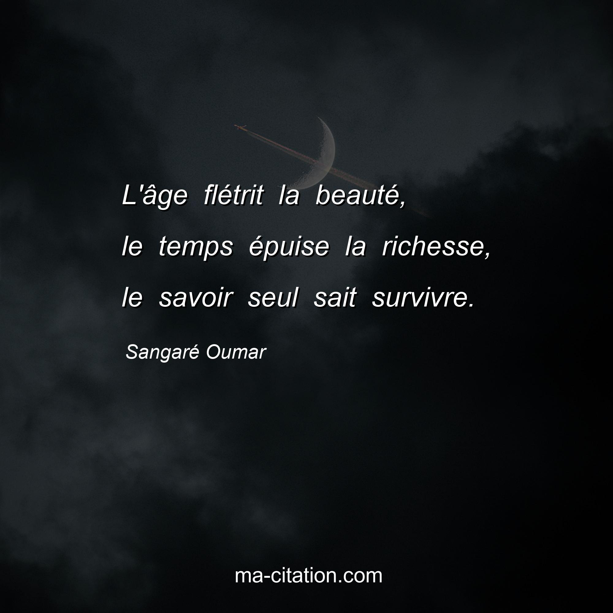 Sangaré Oumar est l'auteur de la citation sur la vie "L'âge flétrit la beauté, le temps épuise la richesse, le savoir seul sait survivre.".