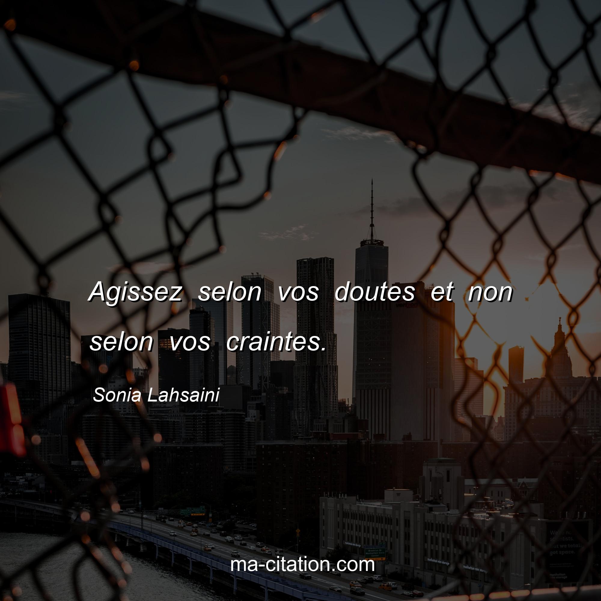 Citation sur la vie de Sonia Lahsaini :Agissez selon vos doutes et non selon vos craintes.