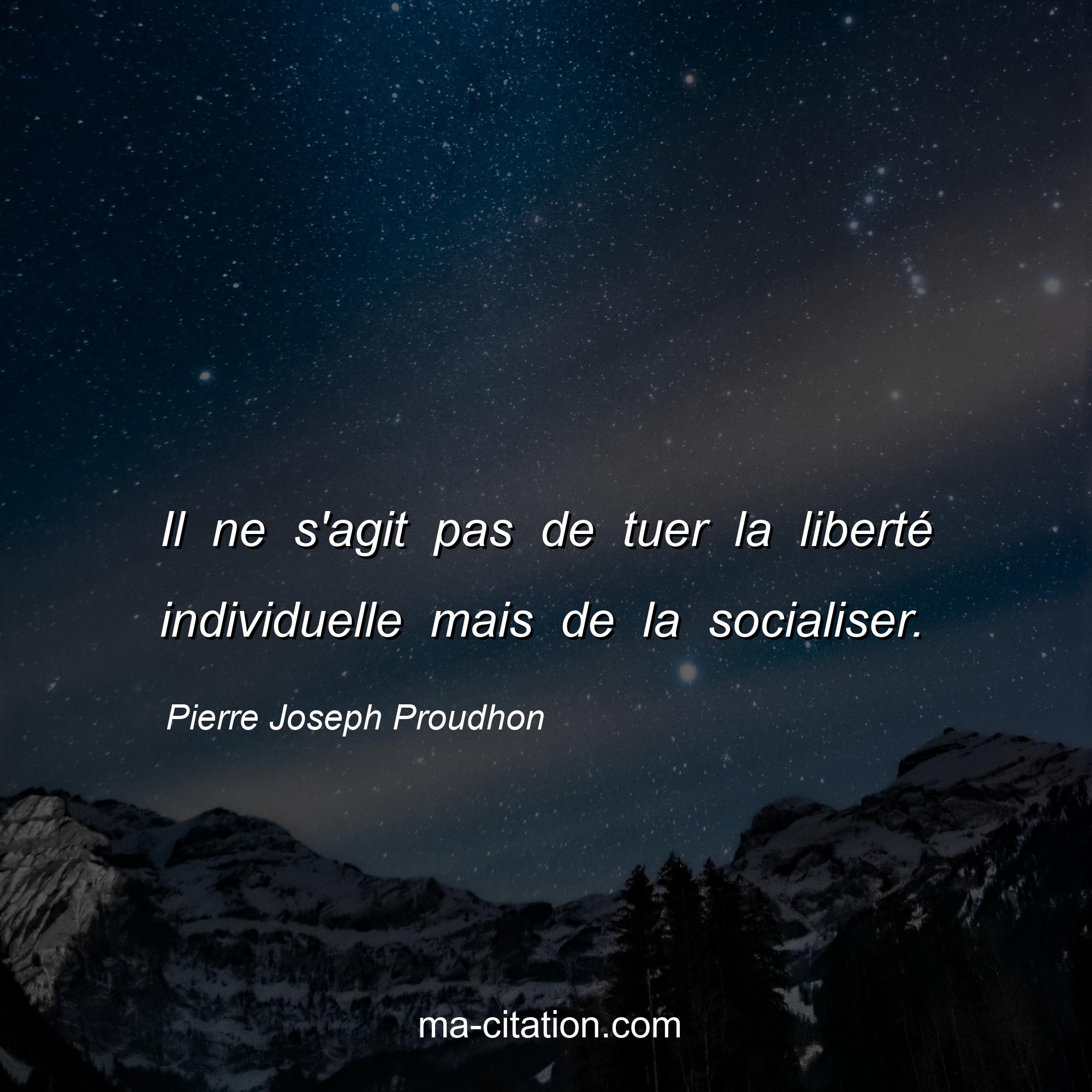 Citation sur la vie de Pierre Joseph Proudhon :Il ne s'agit pas de tuer la liberté individuelle mais de la socialiser.