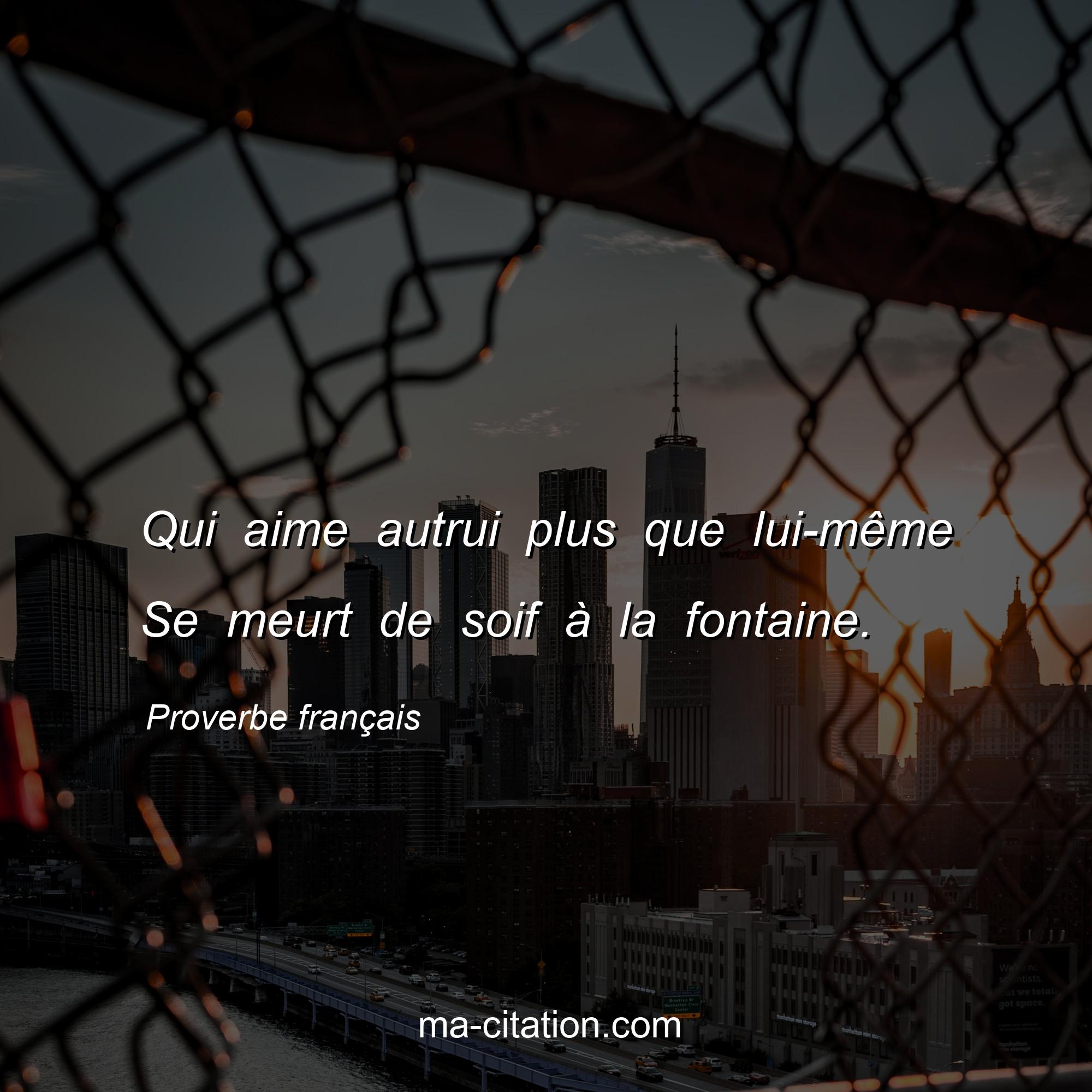 Proverbe français sur la vie :Qui aime autrui plus que lui-même Se meurt de soif à la fontaine.