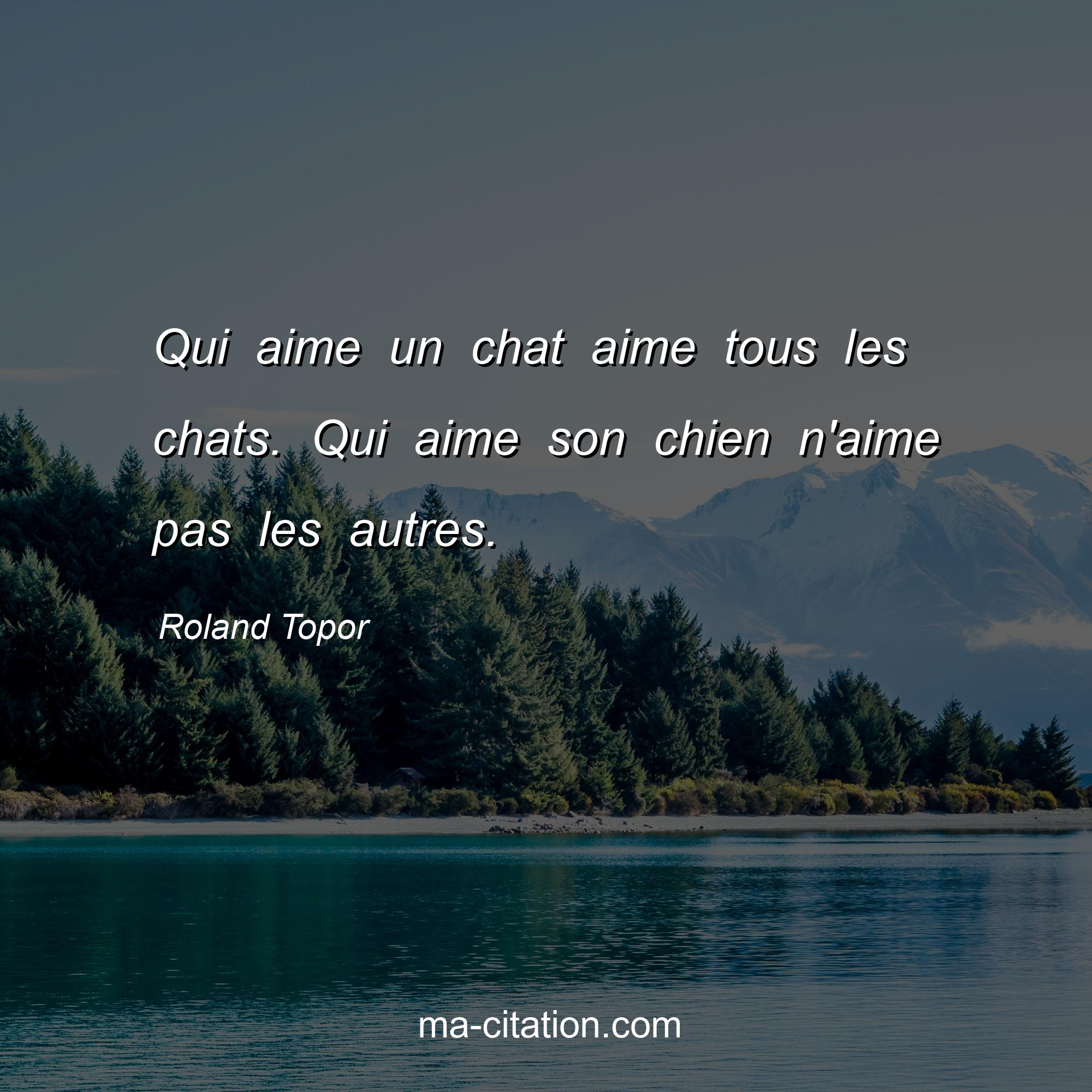 Citation sur la vie de Roland Topor :Qui aime un chat aime tous les chats. Qui aime son chien n'aime pas les autres.