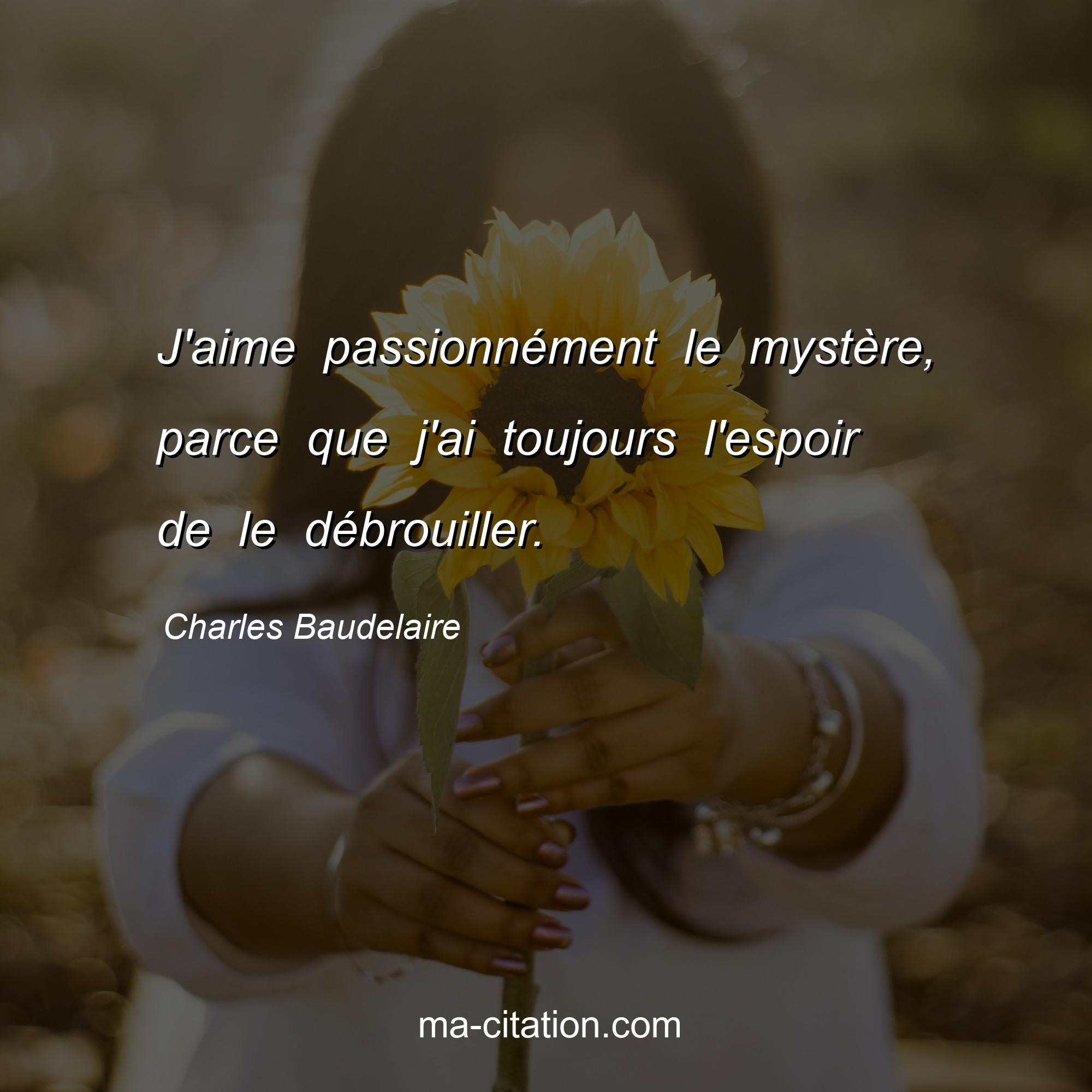 Citation sur la vie de Charles Baudelaire :J'aime passionnément le mystère, parce que j'ai toujours l'espoir de le débrouiller.