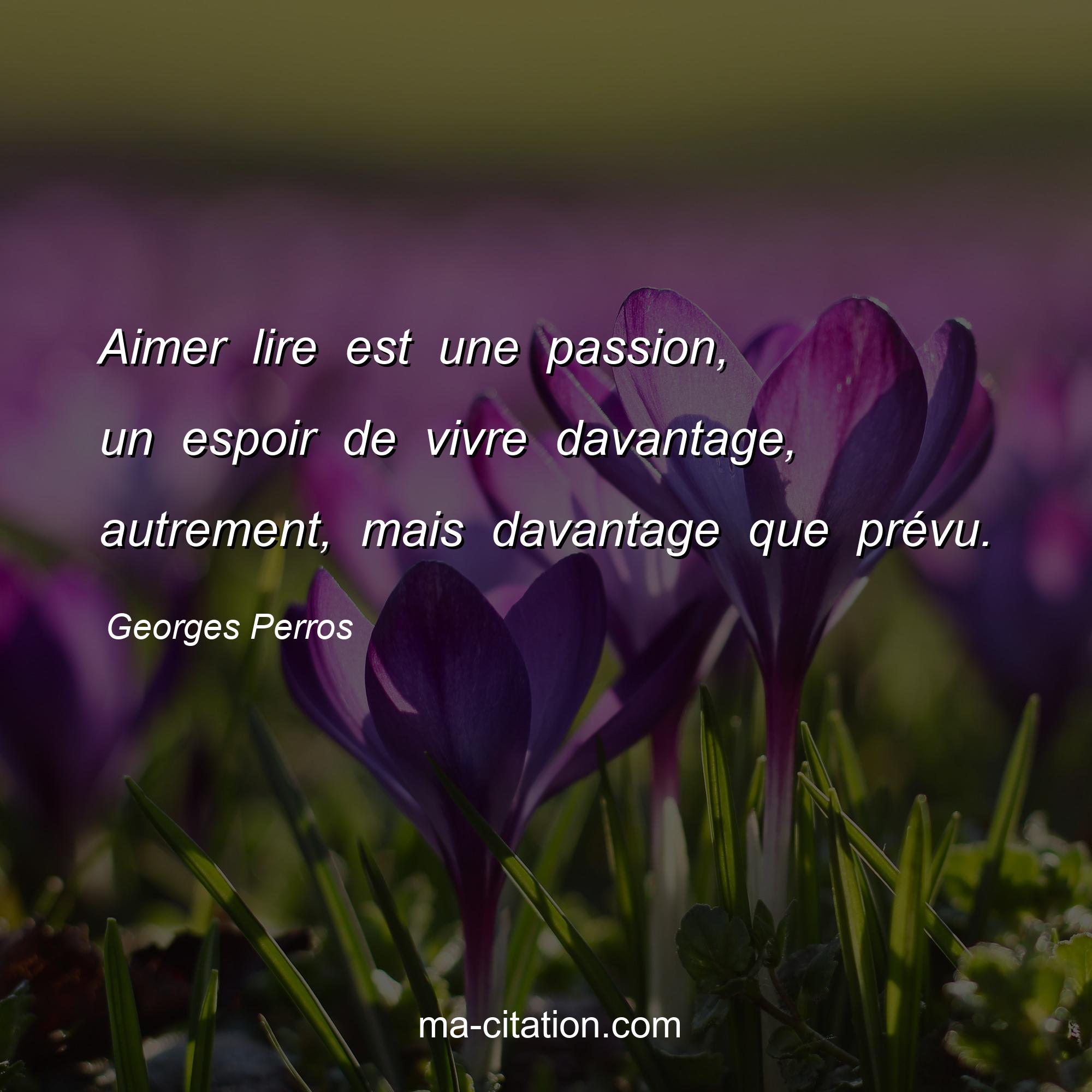 Georges Perros est l'auteur de la citation sur la vie "Aimer lire est une passion, un espoir de vivre davantage, autrement, mais davantage que prévu.".