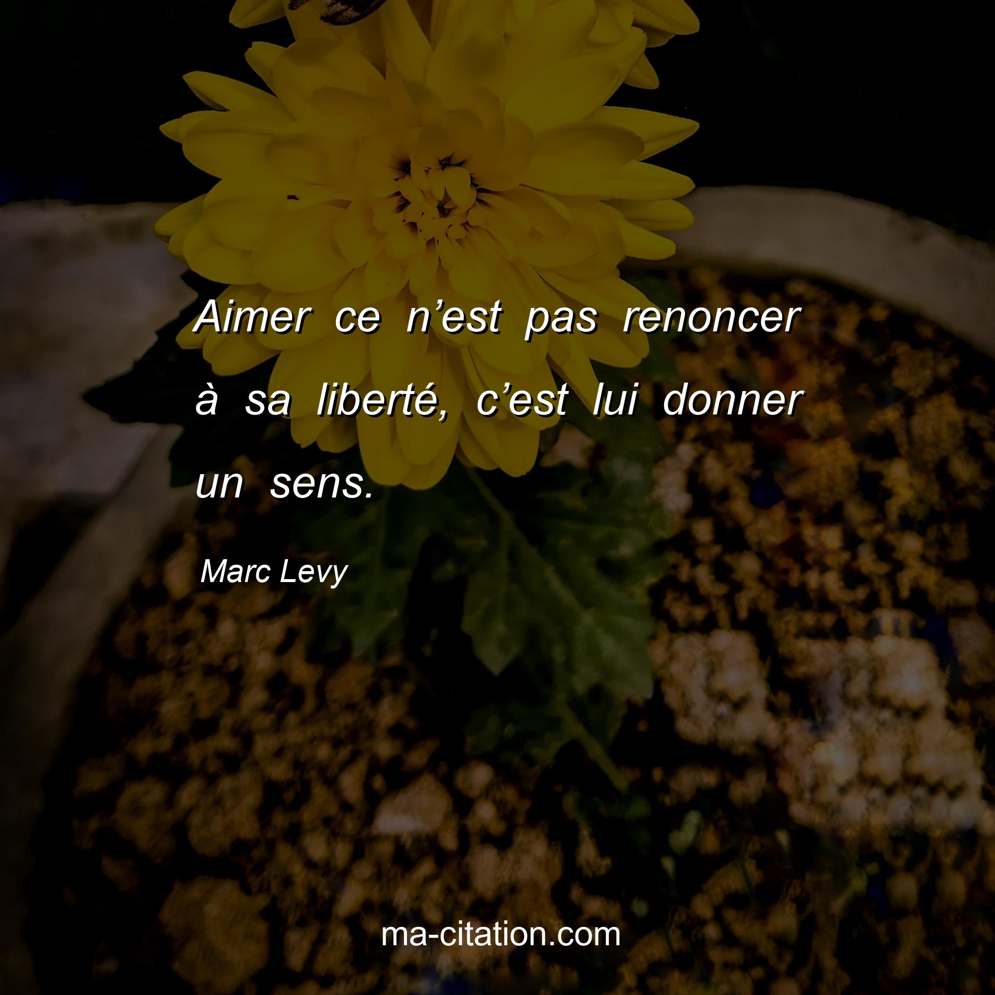 Citation sur la vie de Marc Levy :Aimer ce n’est pas renoncer à sa liberté, c’est lui donner un sens.