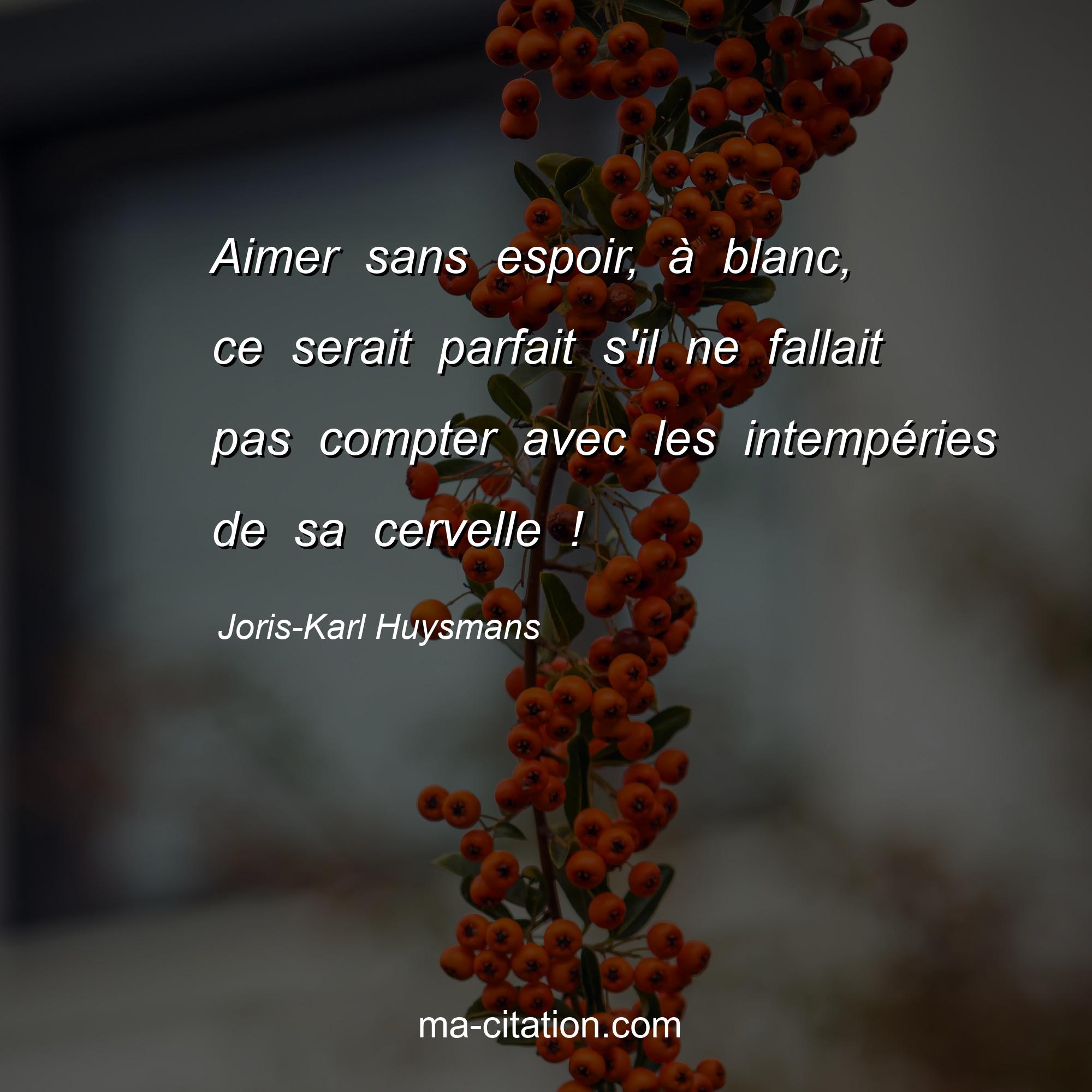 Citation sur la vie de Joris-Karl Huysmans :Aimer sans espoir, à blanc, ce serait parfait s'il ne fallait pas compter avec les intempéries de sa cervelle !