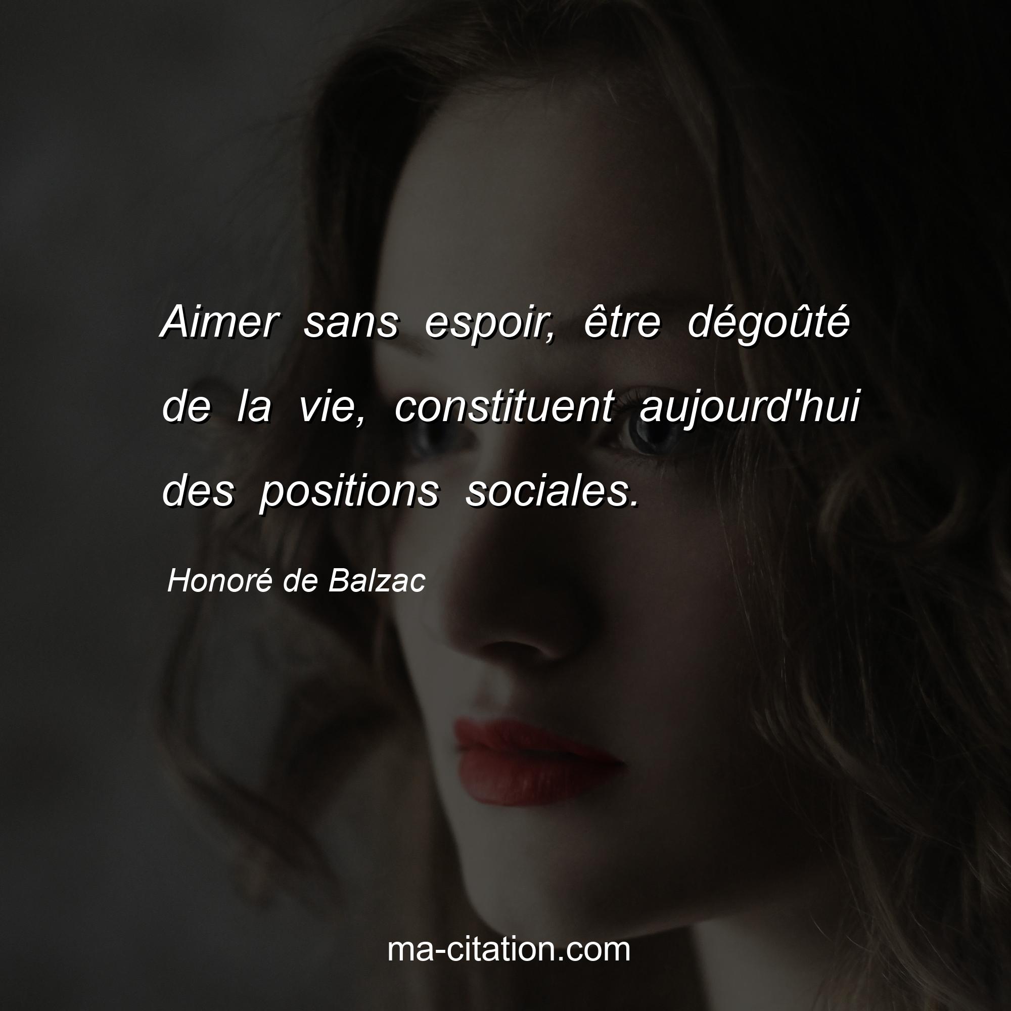 Citation sur la vie de Honoré de Balzac :Aimer sans espoir, être dégoûté de la vie, constituent aujourd'hui des positions sociales.