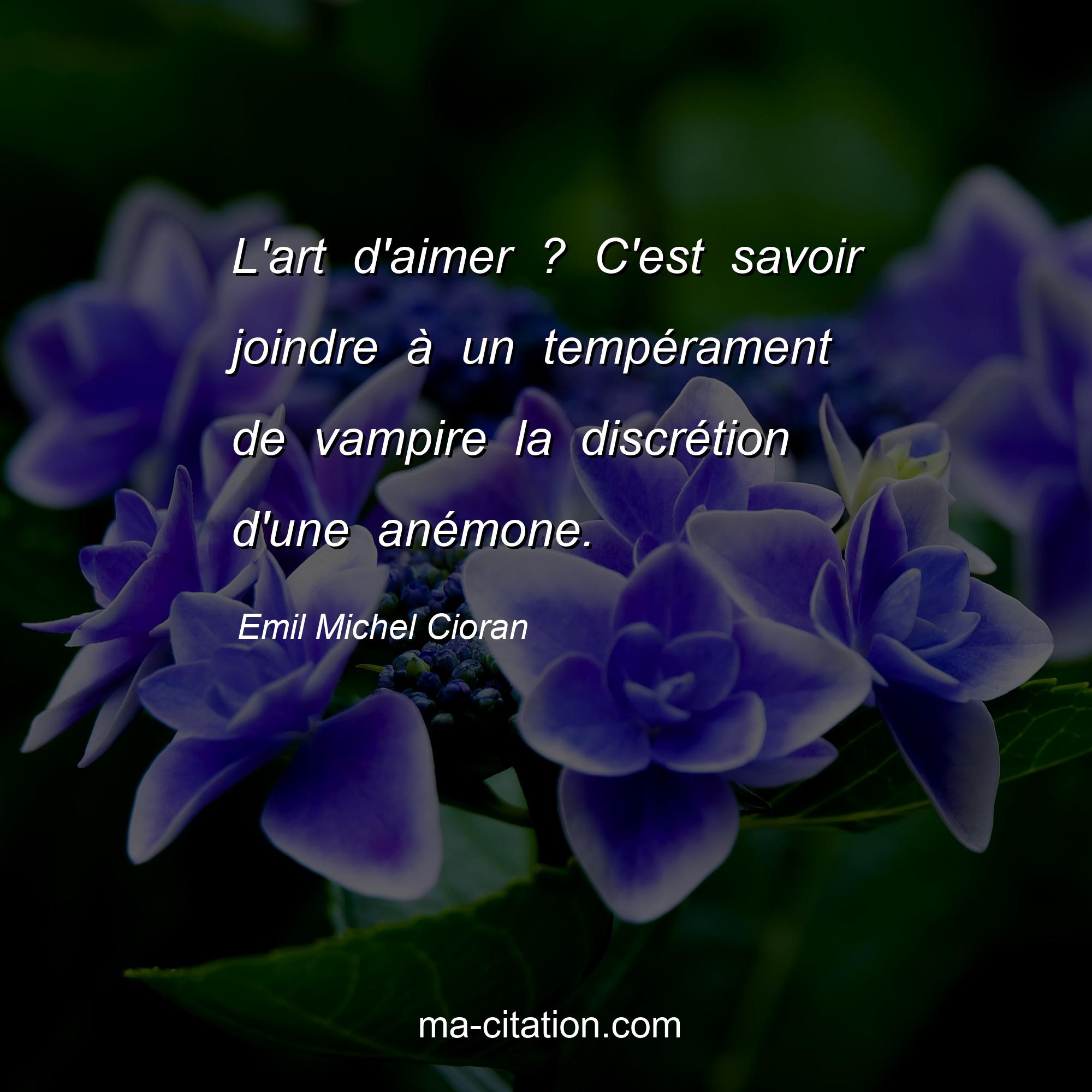 Citation sur la vie d'Emil Michel Cioran :L'art d'aimer ? C'est savoir joindre à un tempérament de vampire la discrétion d'une anémone.