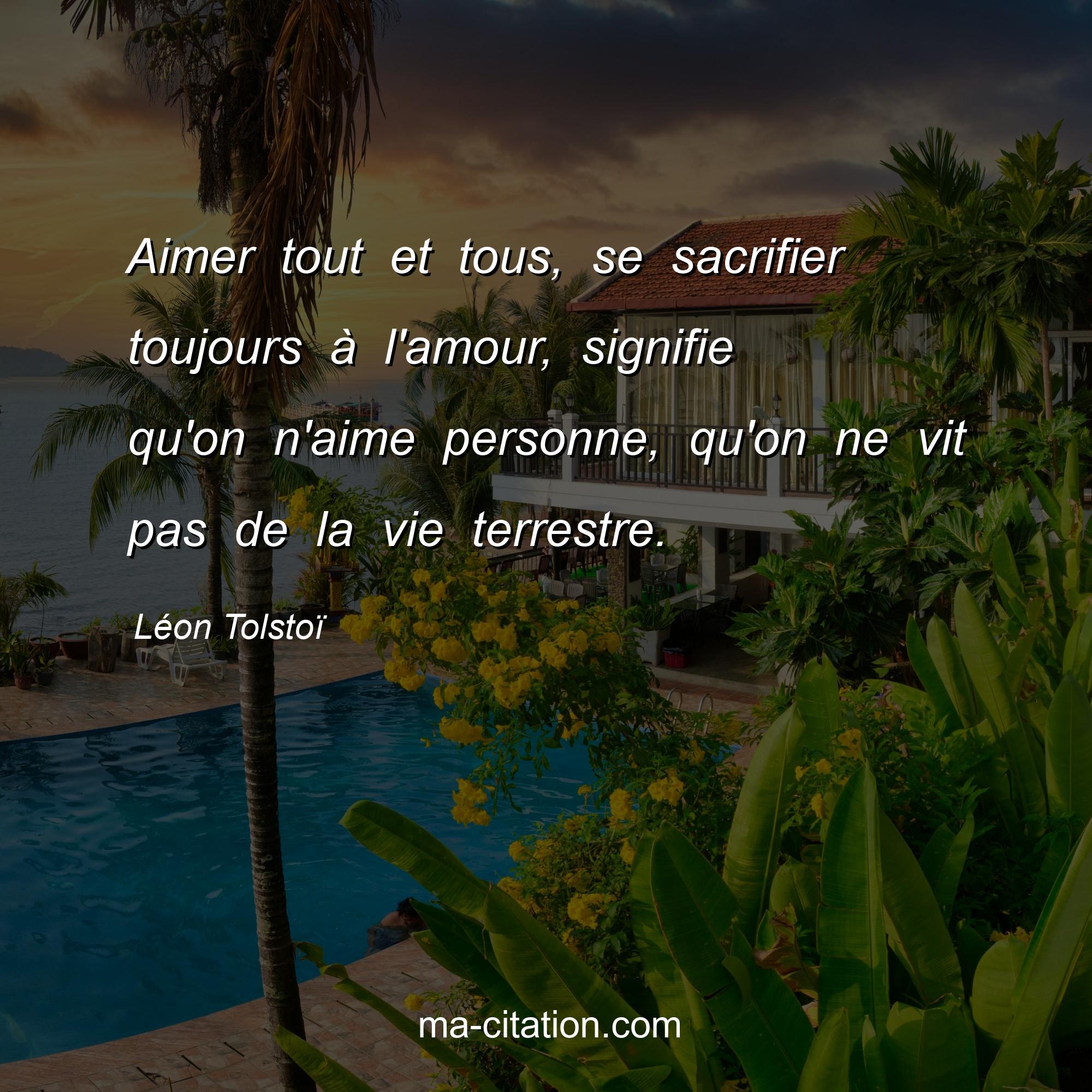 Citation sur la vie de Léon Tolstoï :Aimer tout et tous, se sacrifier toujours à l'amour, signifie qu'on n'aime personne, qu'on ne vit pas de la vie terrestre.