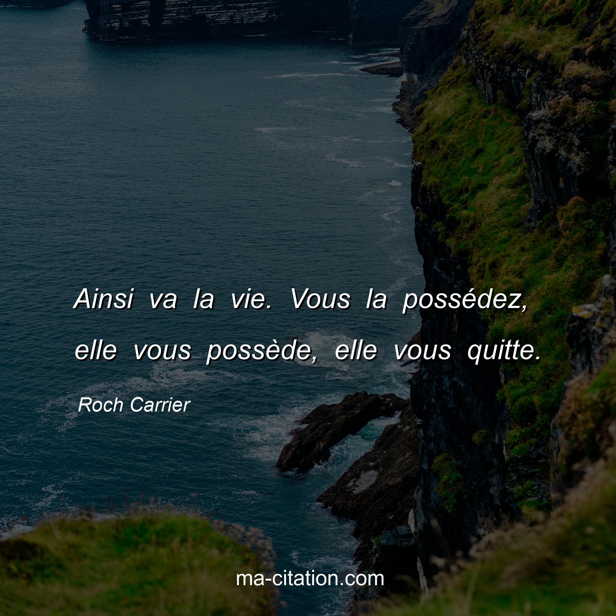 Citation sur la vie de Roch Carrier :Ainsi va la vie. Vous la possédez, elle vous possède, elle vous quitte.
