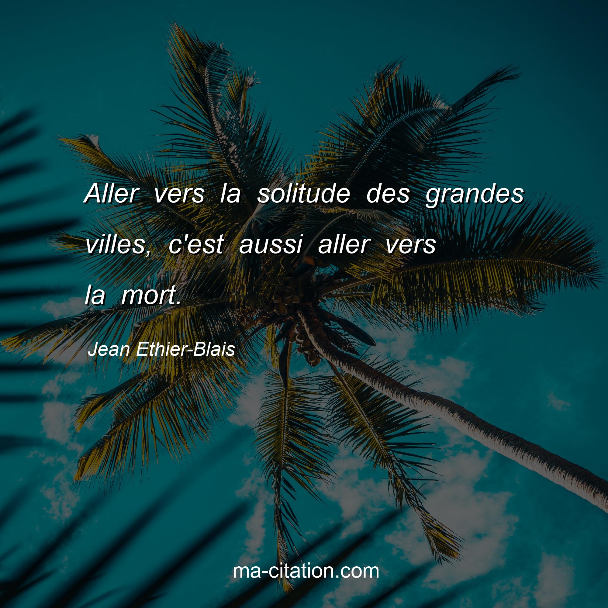 Citation sur la vie de Jean Ethier-Blais :Aller vers la solitude des grandes villes, c'est aussi aller vers la mort.