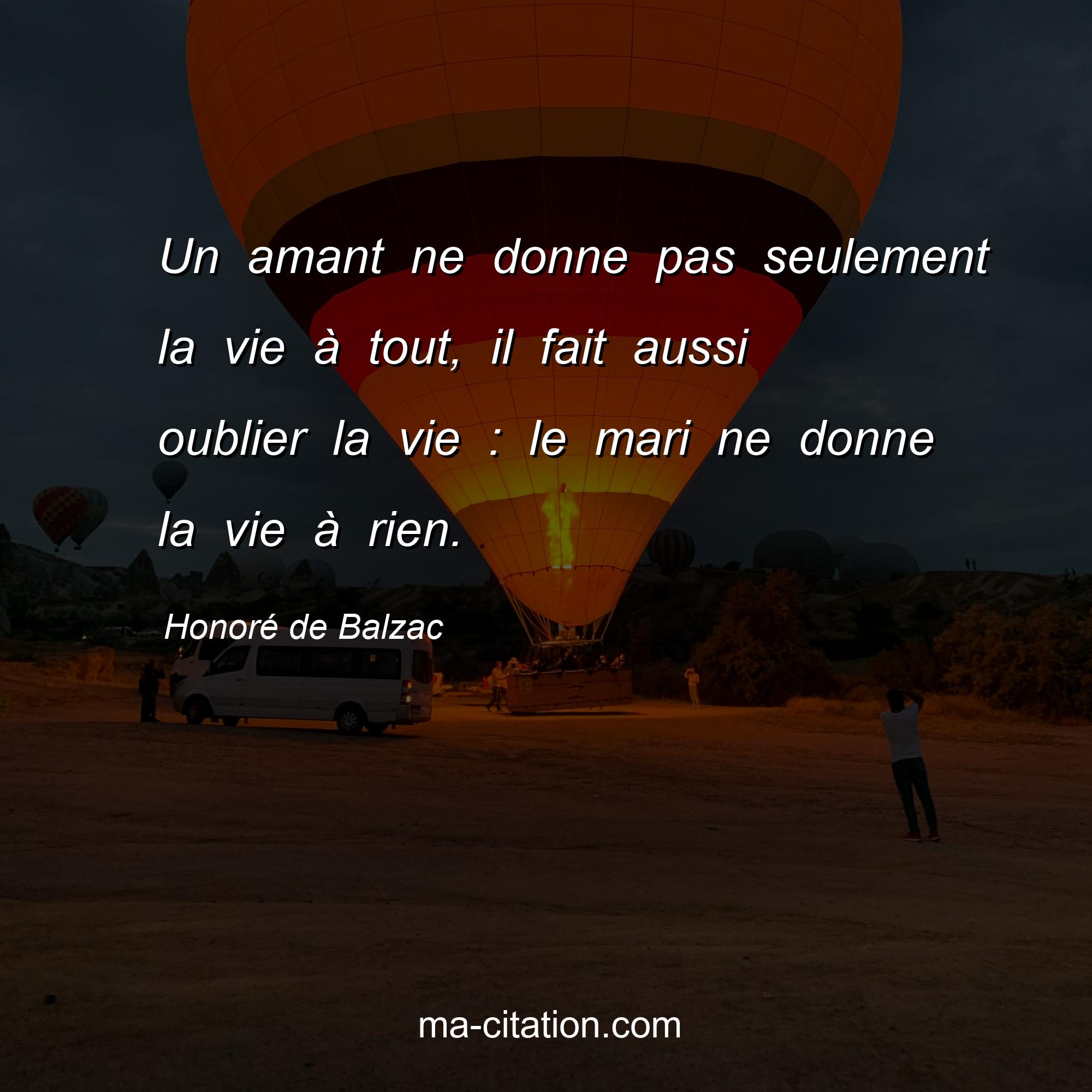 Citation sur la vie de Honoré de Balzac :Un amant ne donne pas seulement la vie à tout, il fait aussi oublier la vie : le mari ne donne la vie à rien.