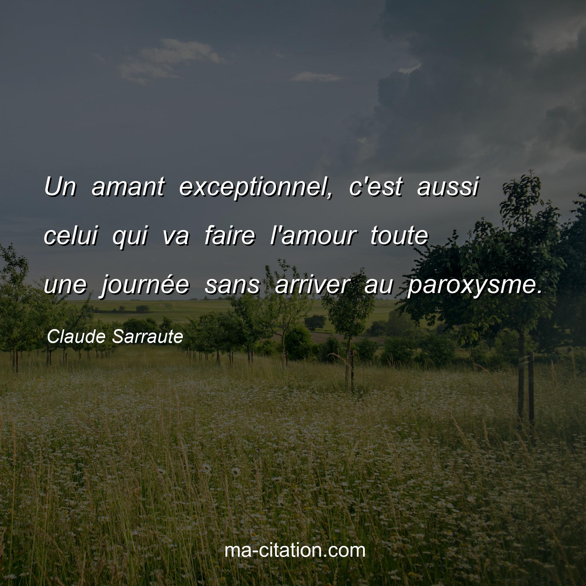 Citation sur la vie de Claude Sarraute :Un amant exceptionnel, c'est aussi celui qui va faire l'amour toute une journée sans arriver au paroxysme.