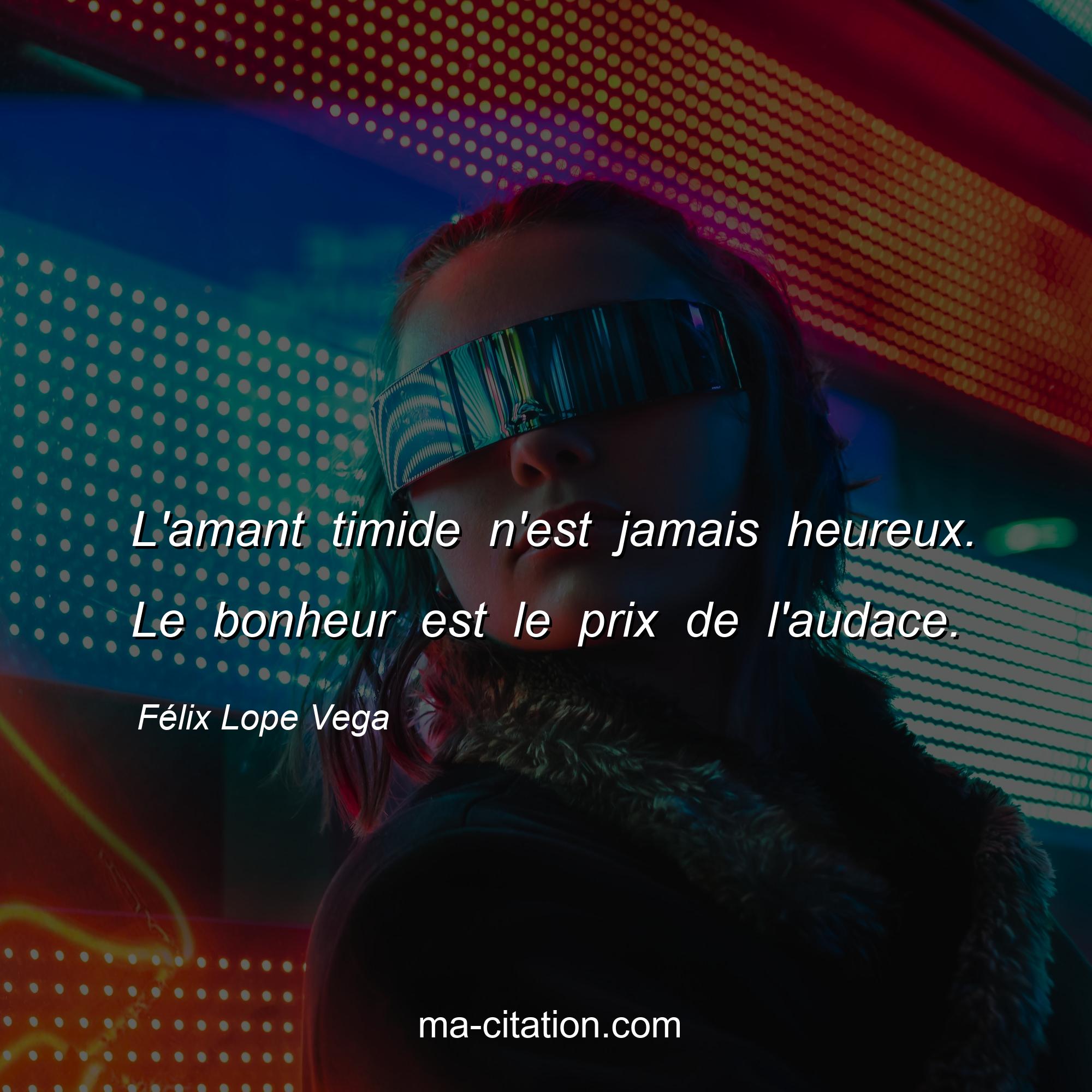Citation sur la vie de Félix Lope Vega :L'amant timide n'est jamais heureux. Le bonheur est le prix de l'audace.