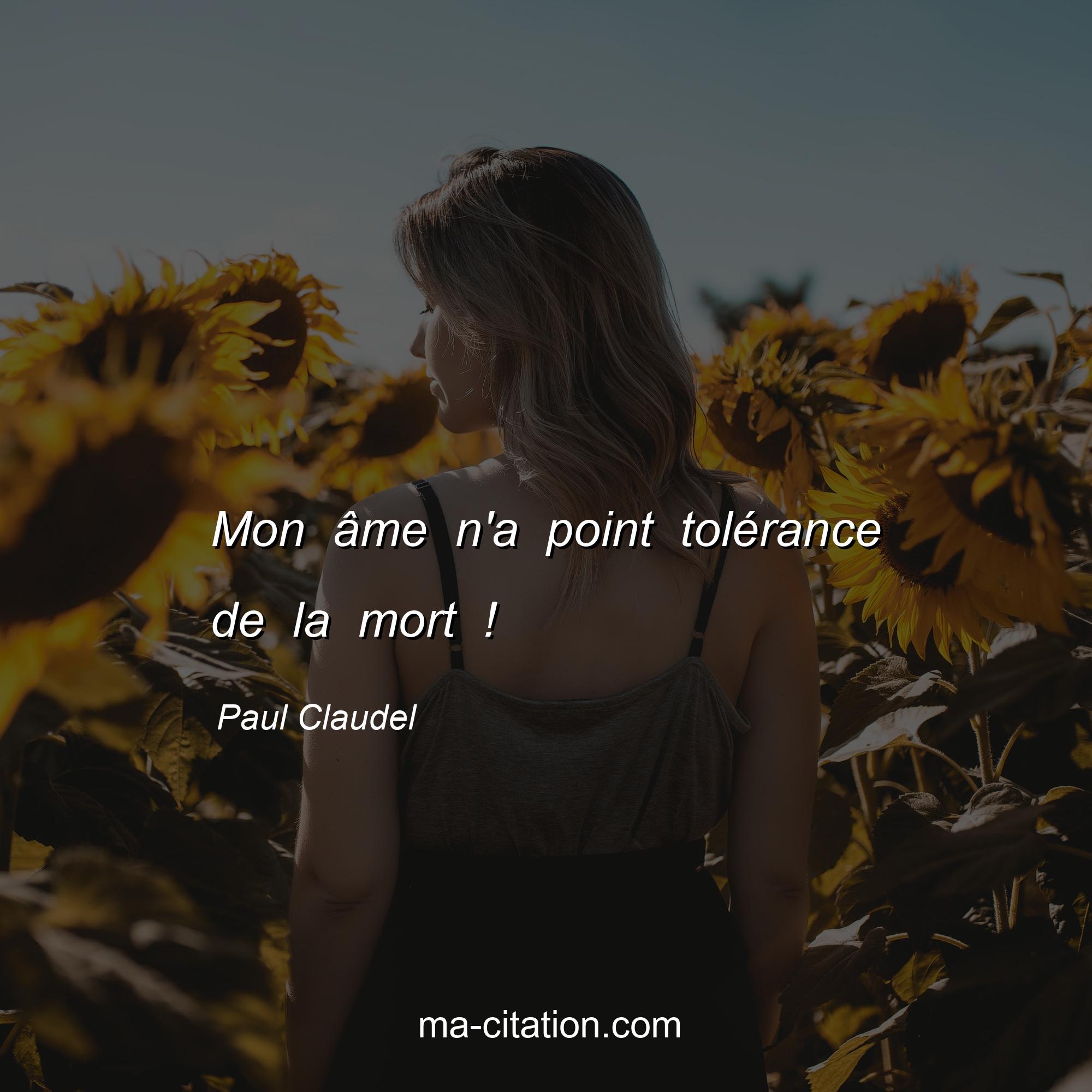 Citation sur la vie de Paul Claudel :Mon âme n'a point tolérance de la mort !