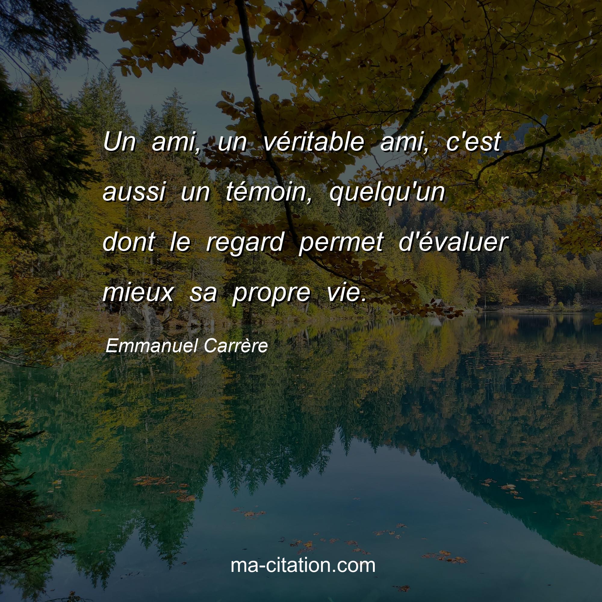 Emmanuel Carrère est l'auteur de la citation sur la vie "Un ami, un véritable ami, c'est aussi un témoin, quelqu'un dont le regard permet d'évaluer mieux sa propre vie.".