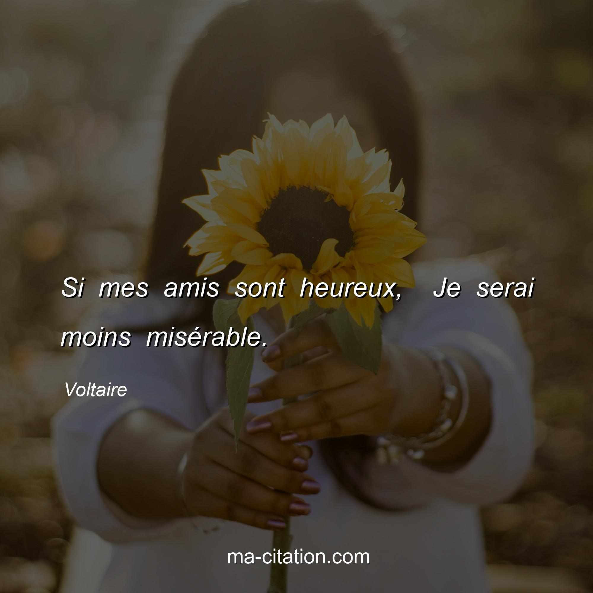 Voltaire est l'auteur de la citation sur la vie "Si mes amis sont heureux, Je serai moins misérable.".