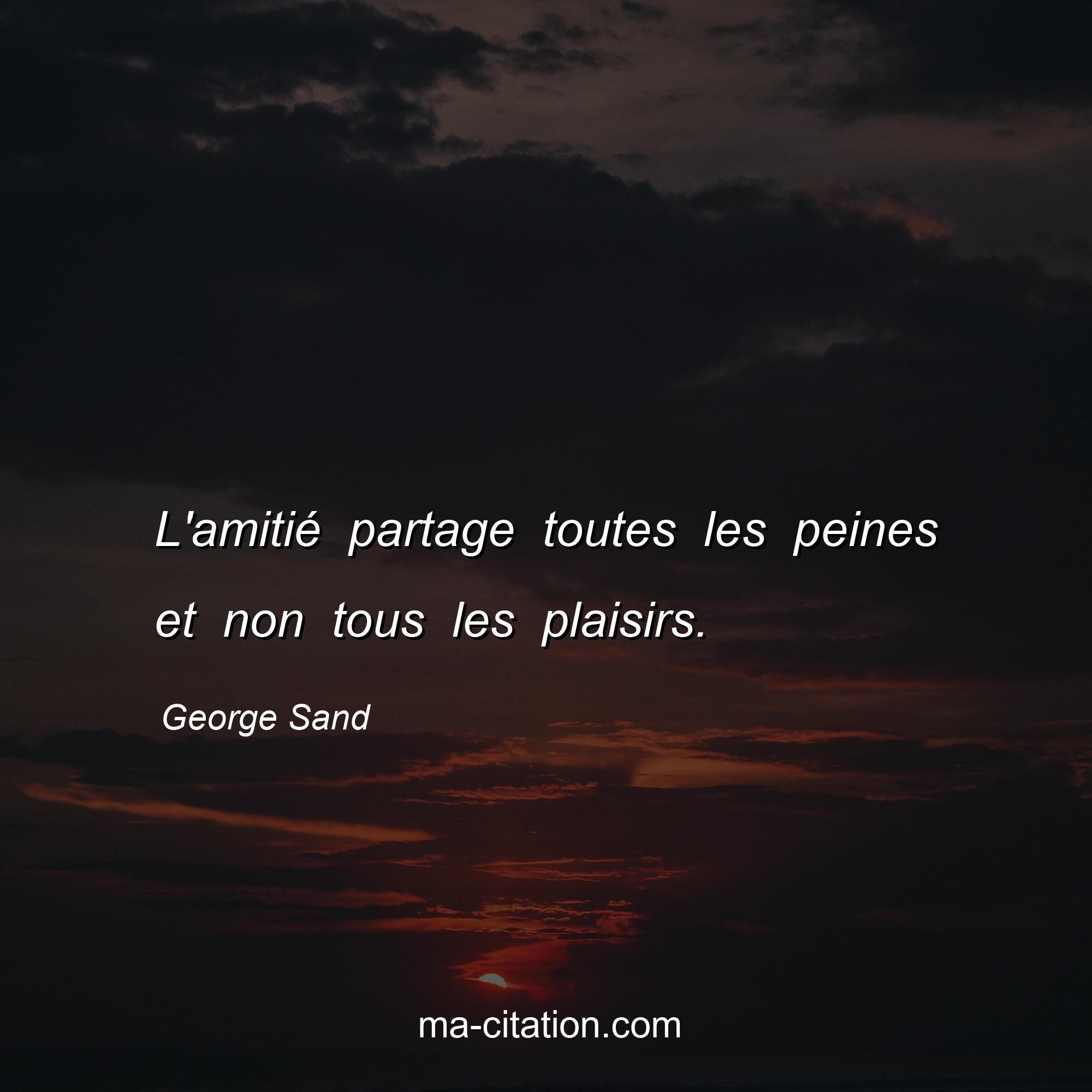 Citation sur la vie de George Sand :L'amitié partage toutes les peines et non tous les plaisirs.