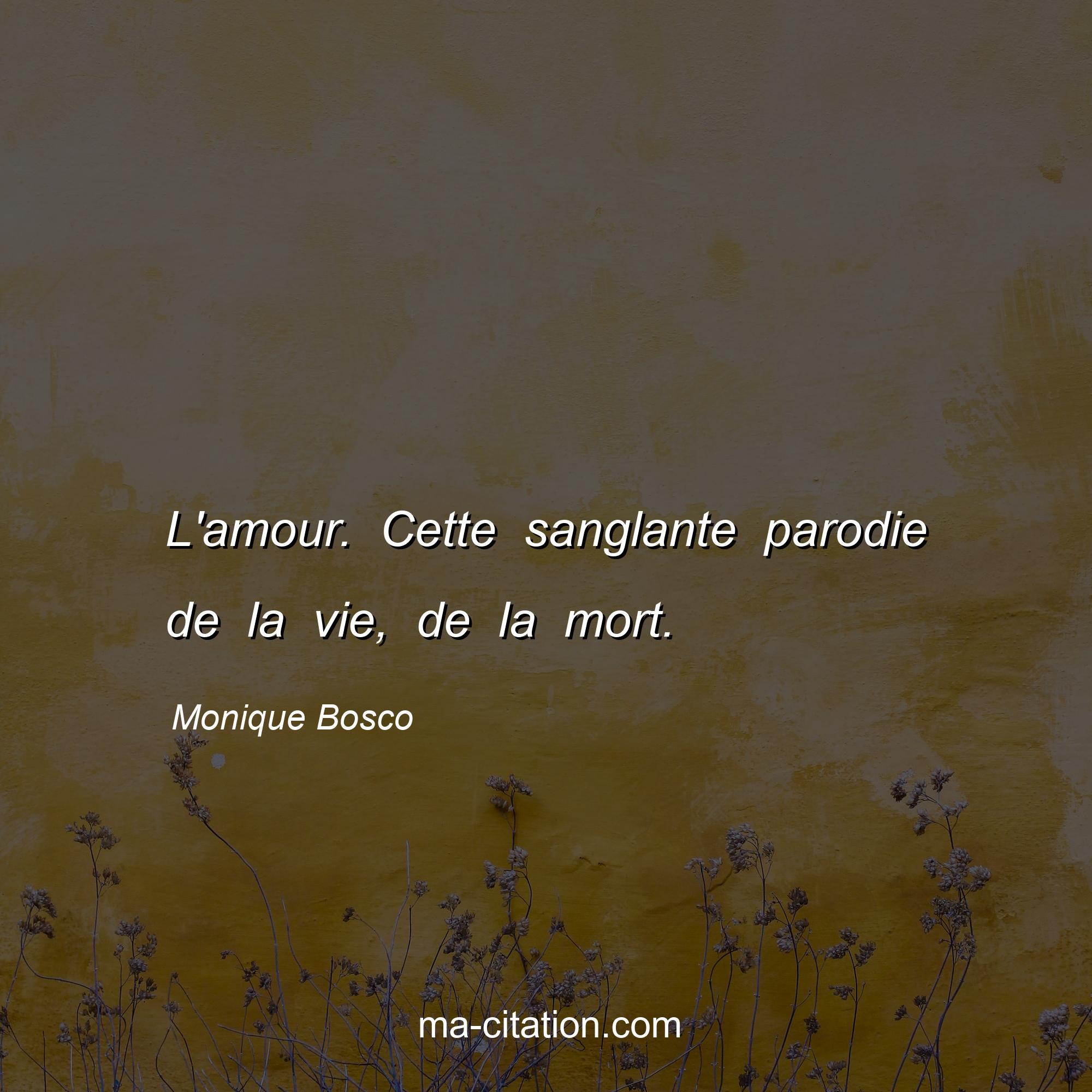 Monique Bosco est l'auteur de la citation sur la vie "L'amour. Cette sanglante parodie de la vie, de la mort.".
