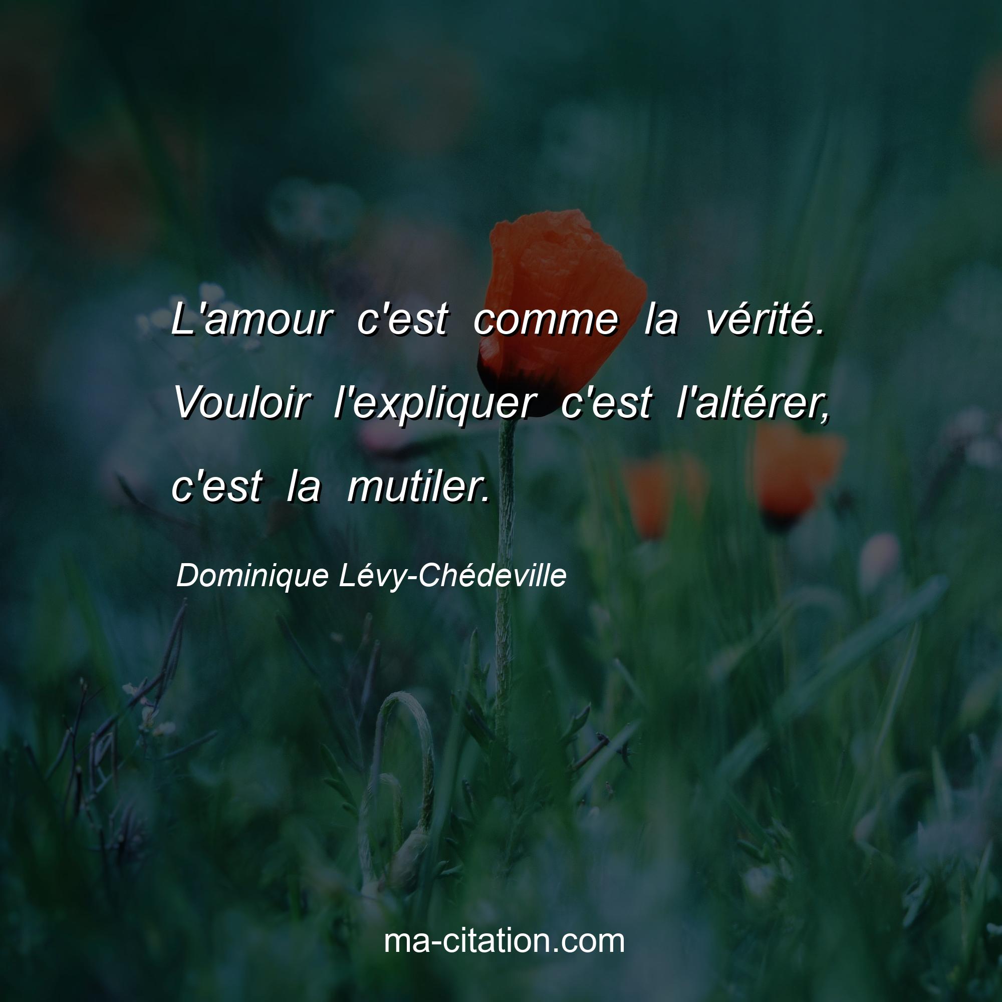 Dominique Lévy-Chédeville est l'auteur de la citation sur la vie "L'amour c'est comme la vérité. Vouloir l'expliquer c'est l'altérer, c'est la mutiler.".