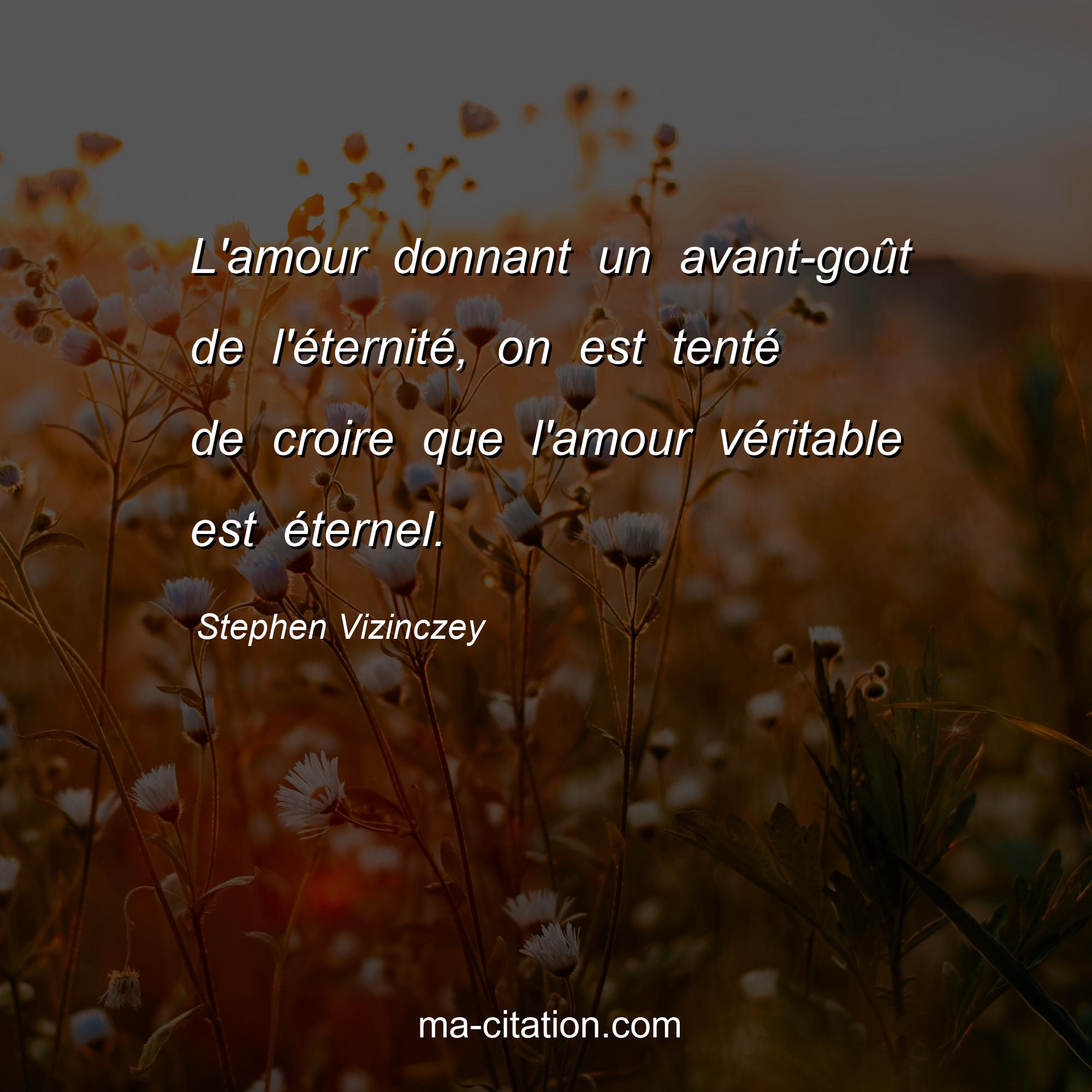 Citation sur la vie de Stephen Vizinczey :L'amour donnant un avant-goût de l'éternité, on est tenté de croire que l'amour véritable est éternel.