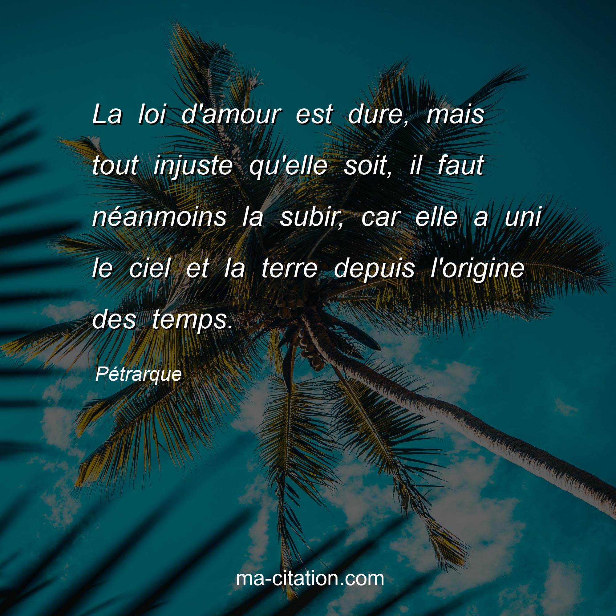 Citation sur la vie de Pétrarque :La loi d'amour est dure, mais tout injuste qu'elle soit, il faut néanmoins la subir, car elle a uni le ciel et la terre depuis l'origine des temps.