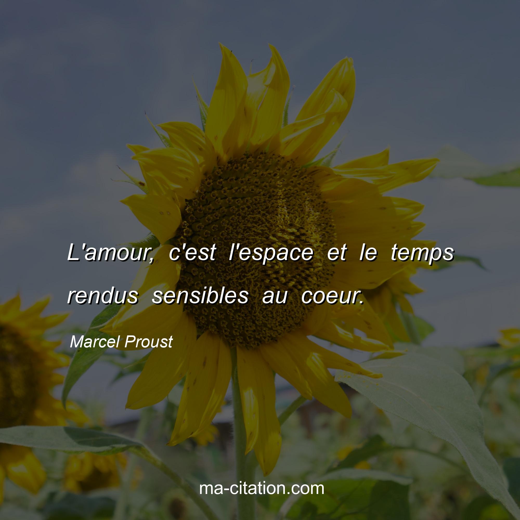 Citation sur la vie de Marcel Proust :L'amour, c'est l'espace et le temps rendus sensibles au coeur.