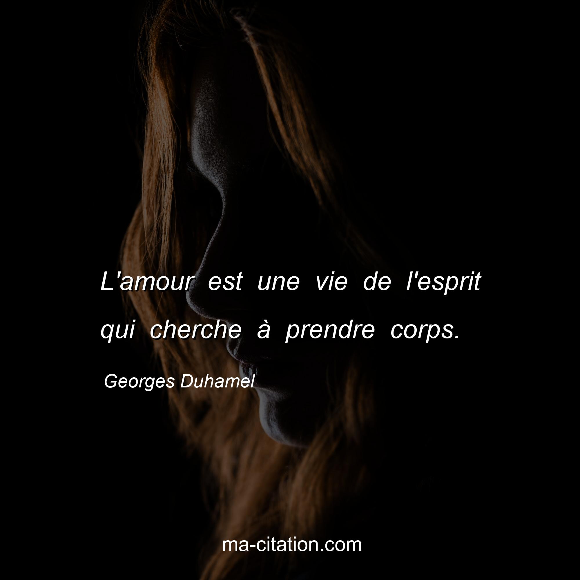 Citation sur la vie de Georges Duhamel :L'amour est une vie de l'esprit qui cherche à prendre corps.