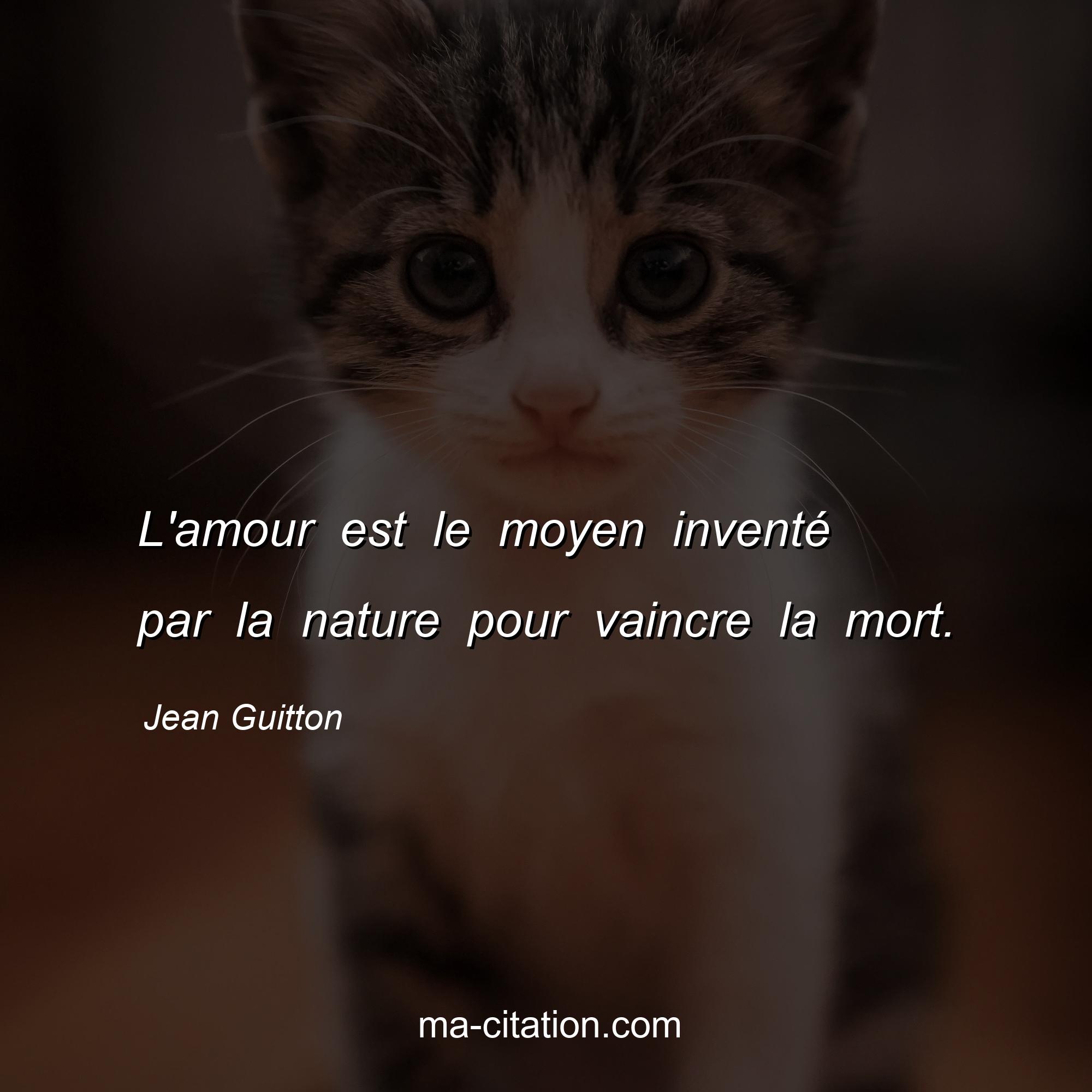 Citation sur la vie de Jean Guitton :L'amour est le moyen inventé par la nature pour vaincre la mort.