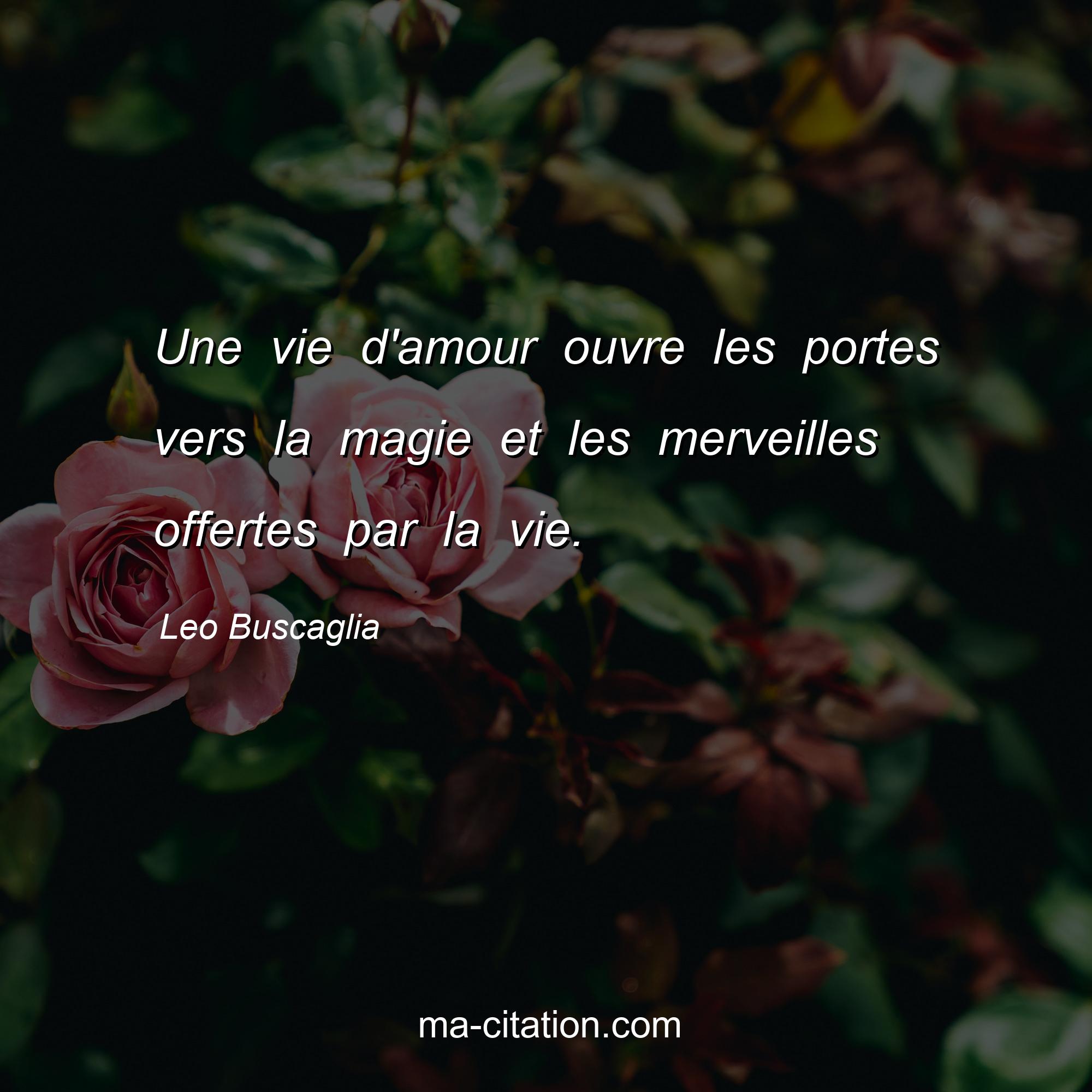 Citation sur la vie de Leo Buscaglia :Une vie d'amour ouvre les portes vers la magie et les merveilles offertes par la vie.