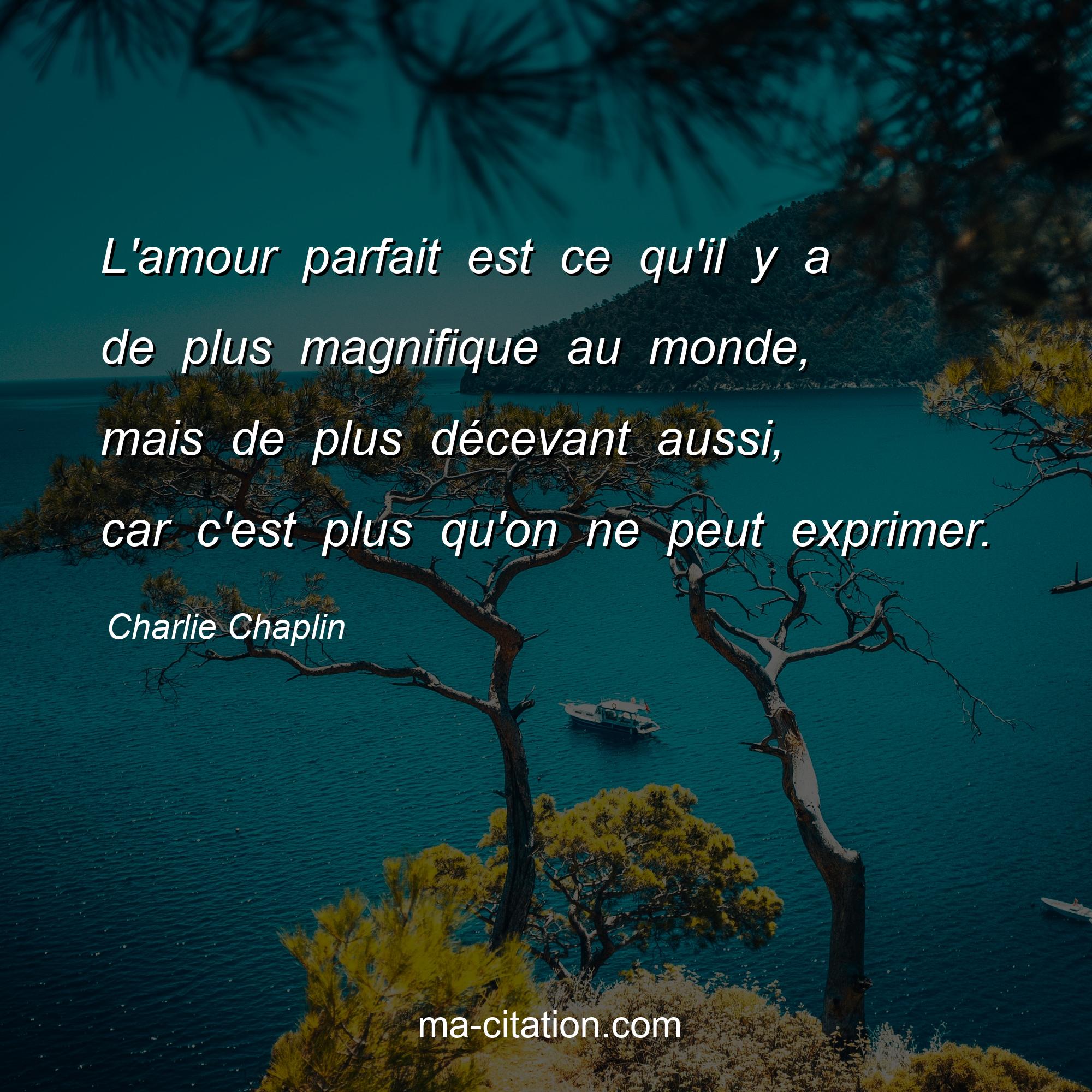 Citation sur la vie de Charlie Chaplin :L'amour parfait est ce qu'il y a de plus magnifique au monde, mais de plus décevant aussi, car c'est plus qu'on ne peut exprimer.