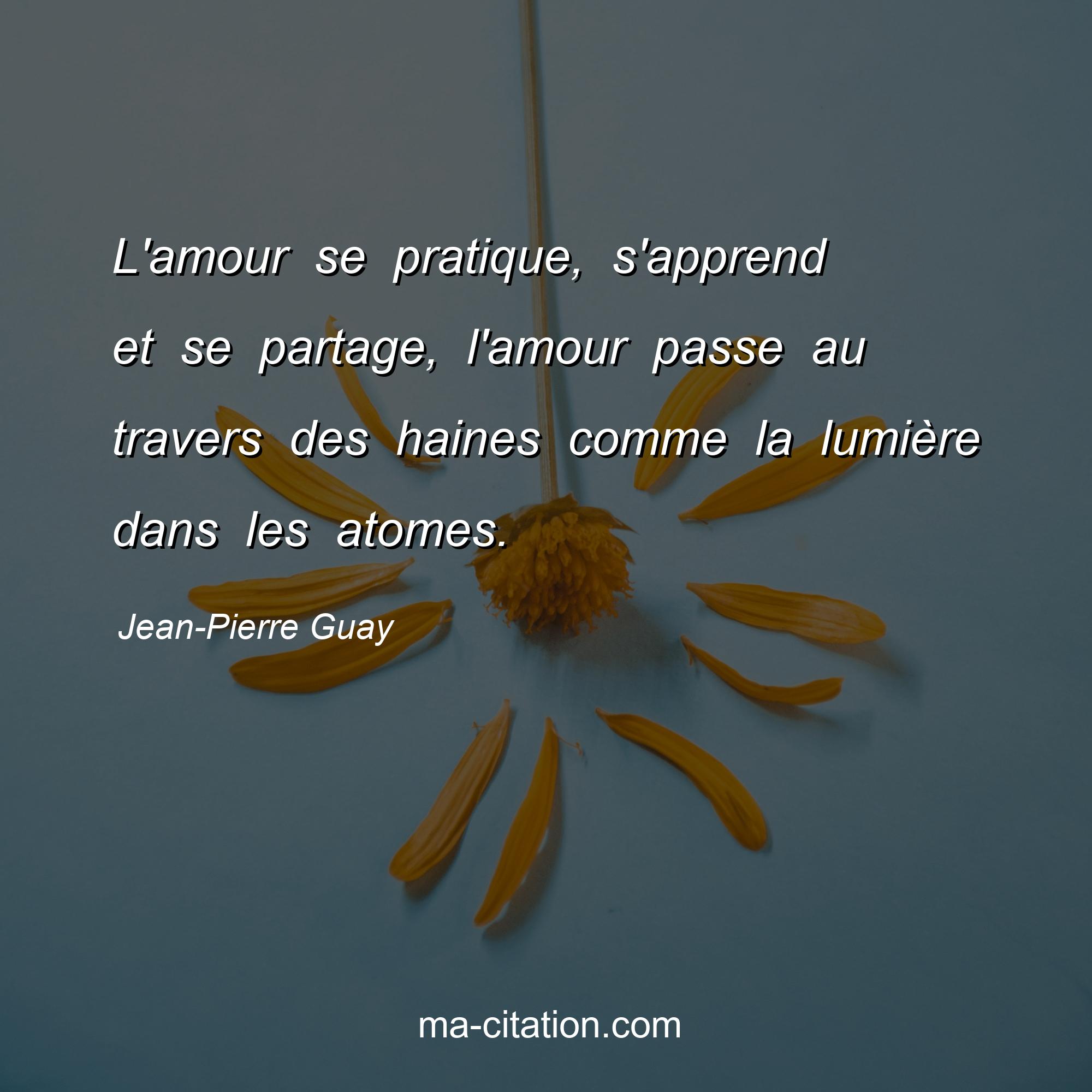 Jean-Pierre Guay est l'auteur de la citation sur la vie "L'amour se pratique, s'apprend et se partage, l'amour passe au travers des haines comme la lumière dans les atomes.".