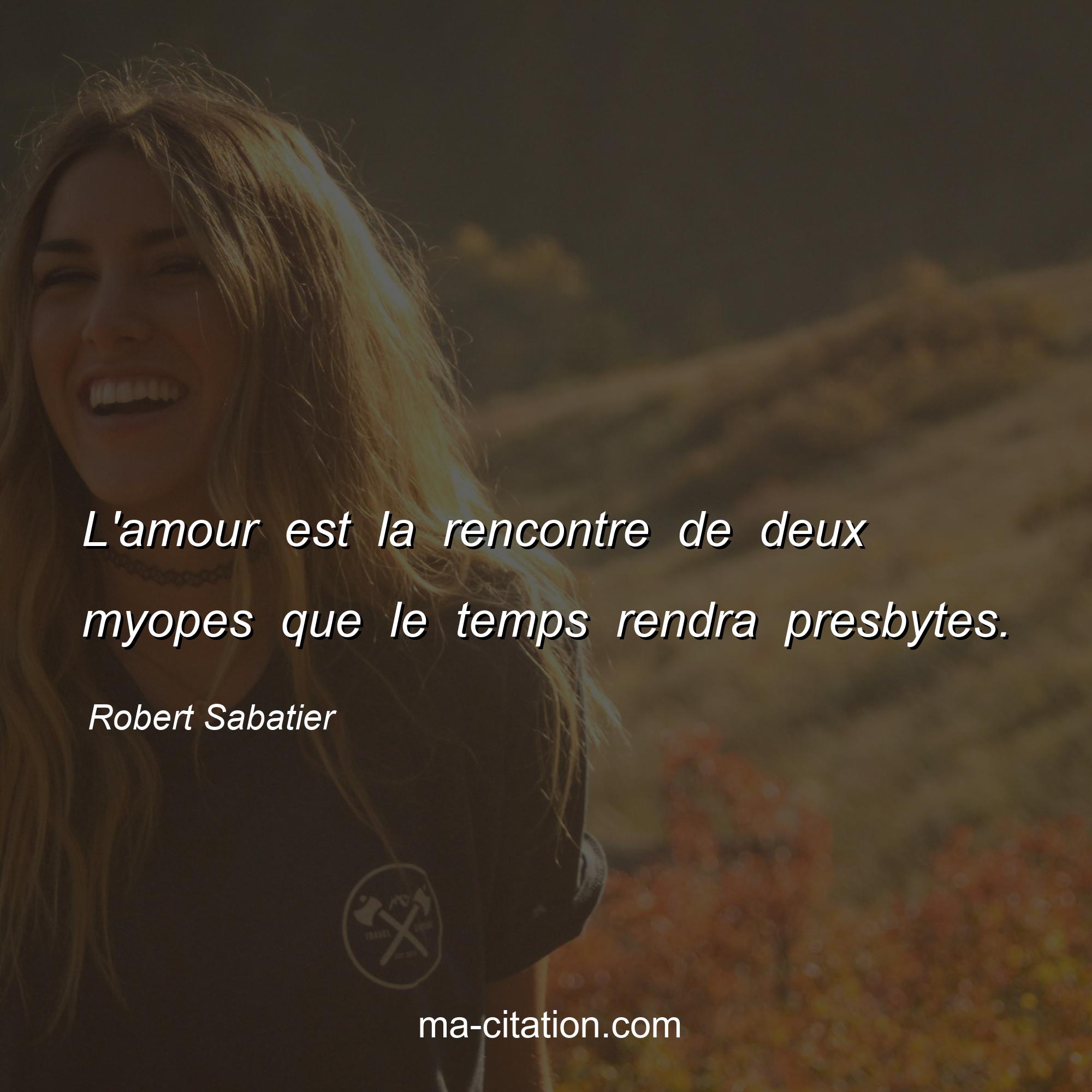 Citation sur la vie de Robert Sabatier :L'amour est la rencontre de deux myopes que le temps rendra presbytes.