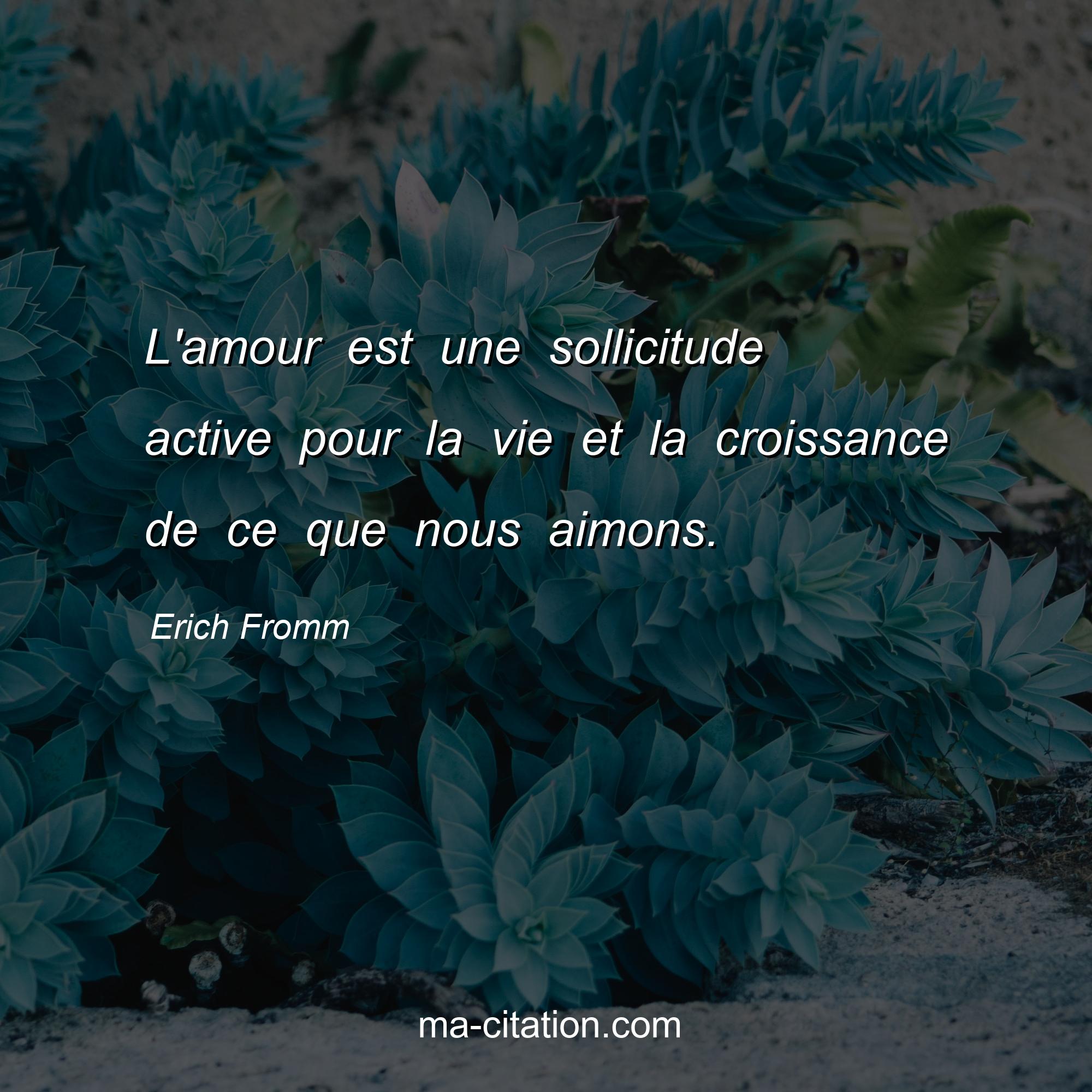 Citation sur la vie d'Erich Fromm :L'amour est une sollicitude active pour la vie et la croissance de ce que nous aimons.