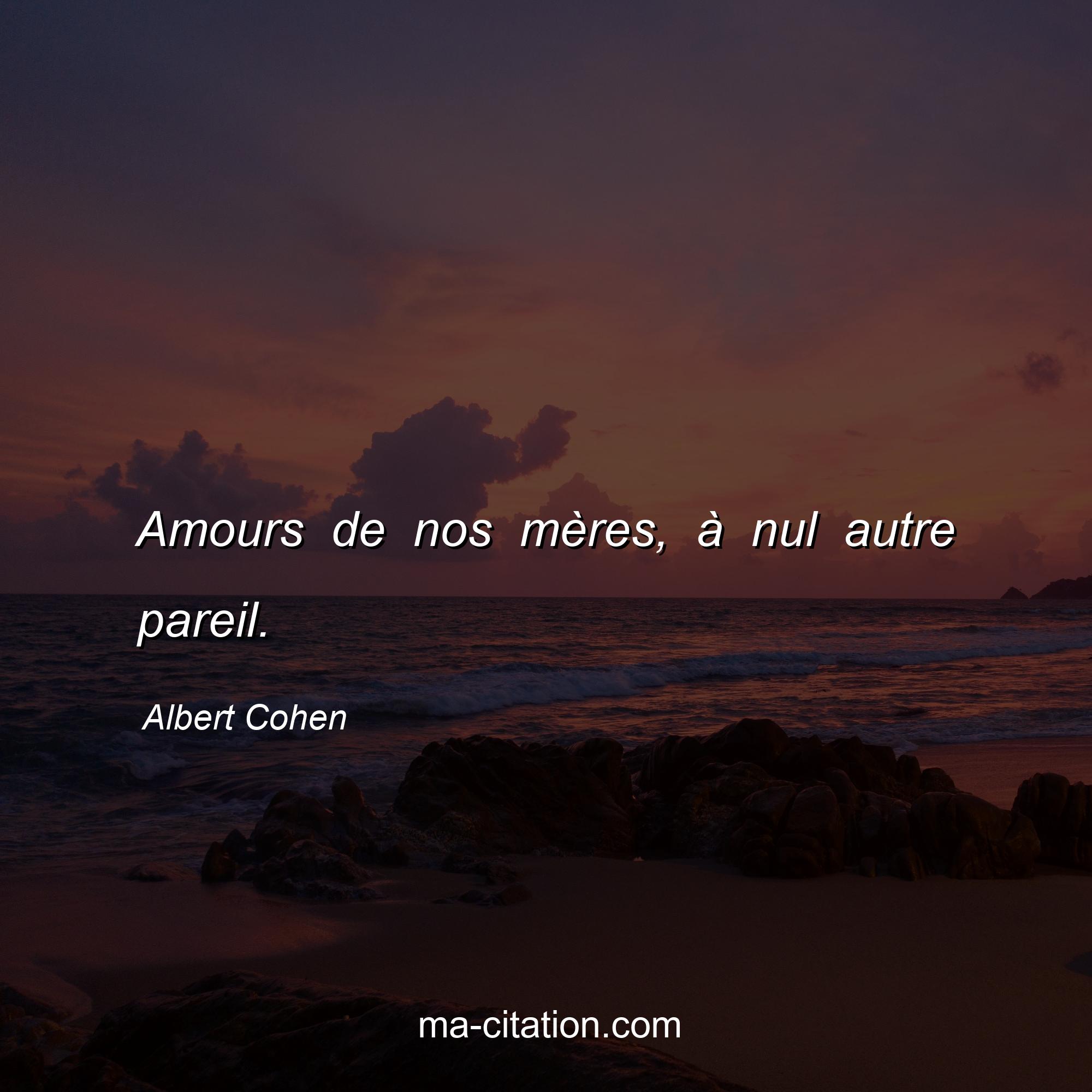 Albert Cohen est l'auteur de la citation sur la vie "Amours de nos mères, à nul autre pareil.".