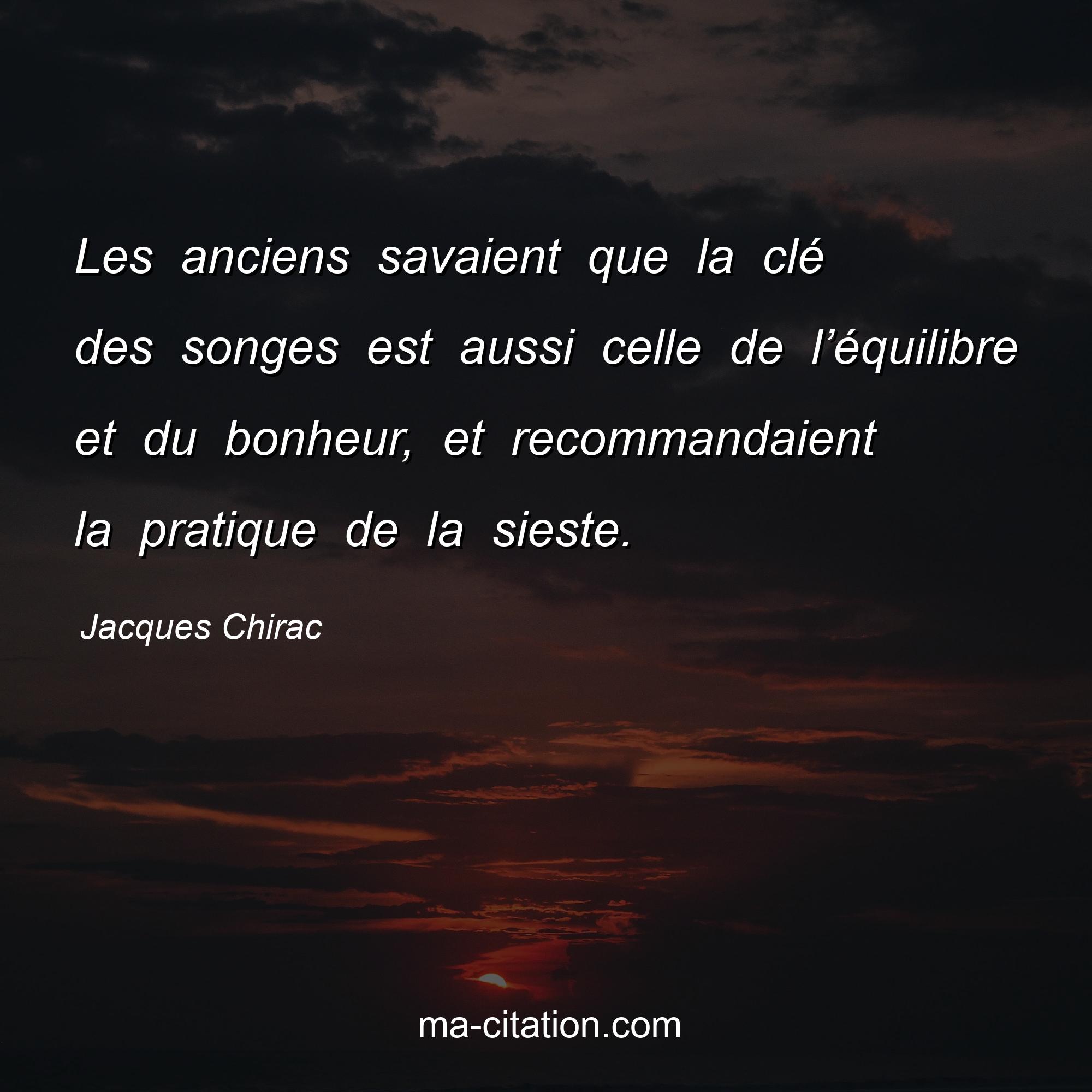 Jacques Chirac est l'auteur de la citation sur la vie "Les anciens savaient que la clé des songes est aussi celle de l’équilibre et du bonheur, et recommandaient la pratique de la sieste.".