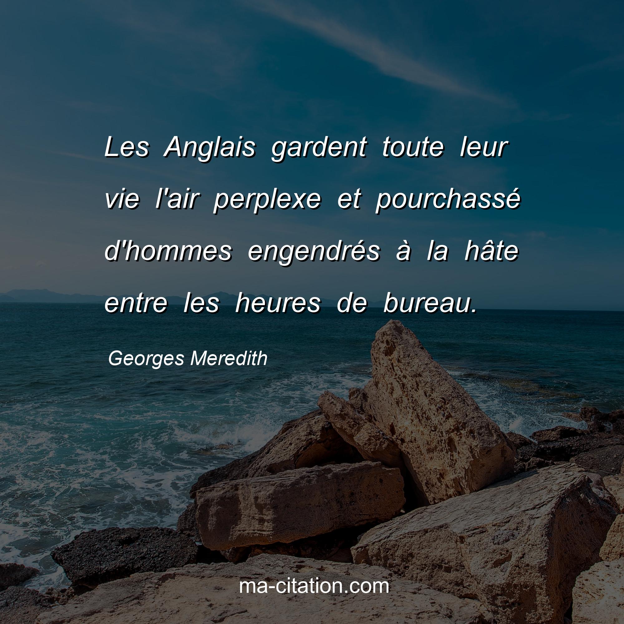Citation sur la vie de Georges Meredith :Les Anglais gardent toute leur vie l'air perplexe et pourchassé d'hommes engendrés à la hâte entre les heures de bureau.