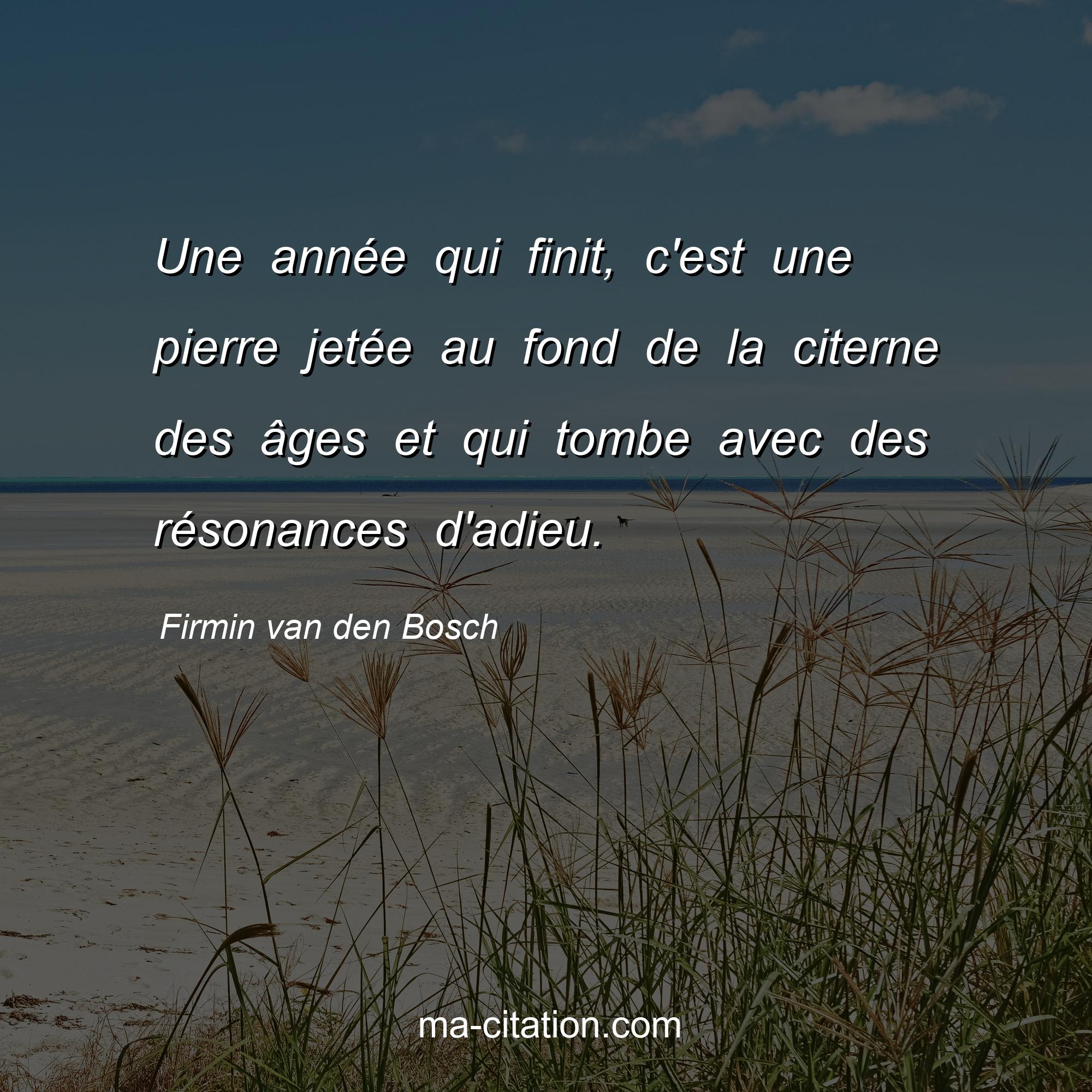 Citation sur la vie de Firmin van den Bosch :Une année qui finit, c'est une pierre jetée au fond de la citerne des âges et qui tombe avec des résonances d'adieu.