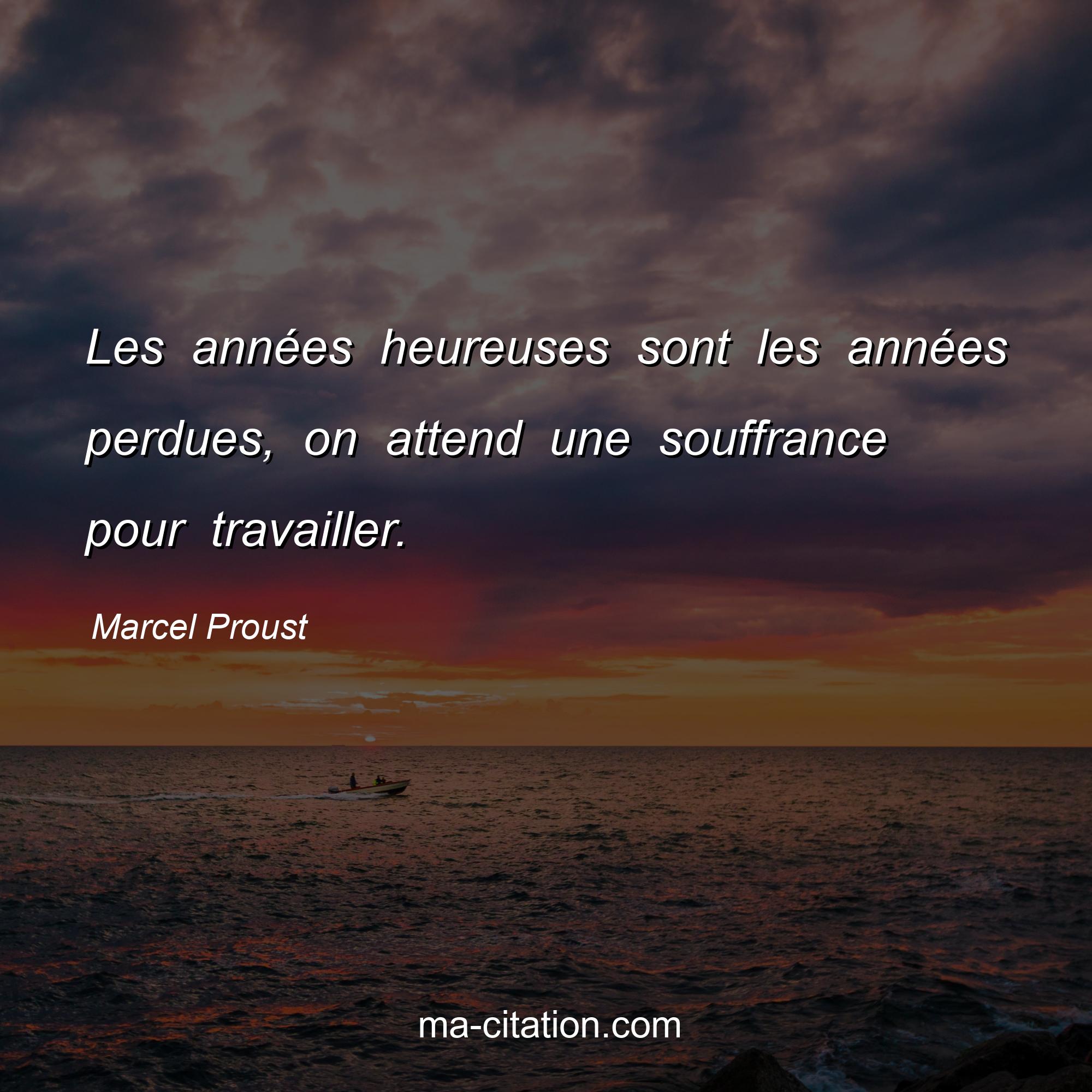 Citation sur la vie de Marcel Proust :Les années heureuses sont les années perdues, on attend une souffrance pour travailler.