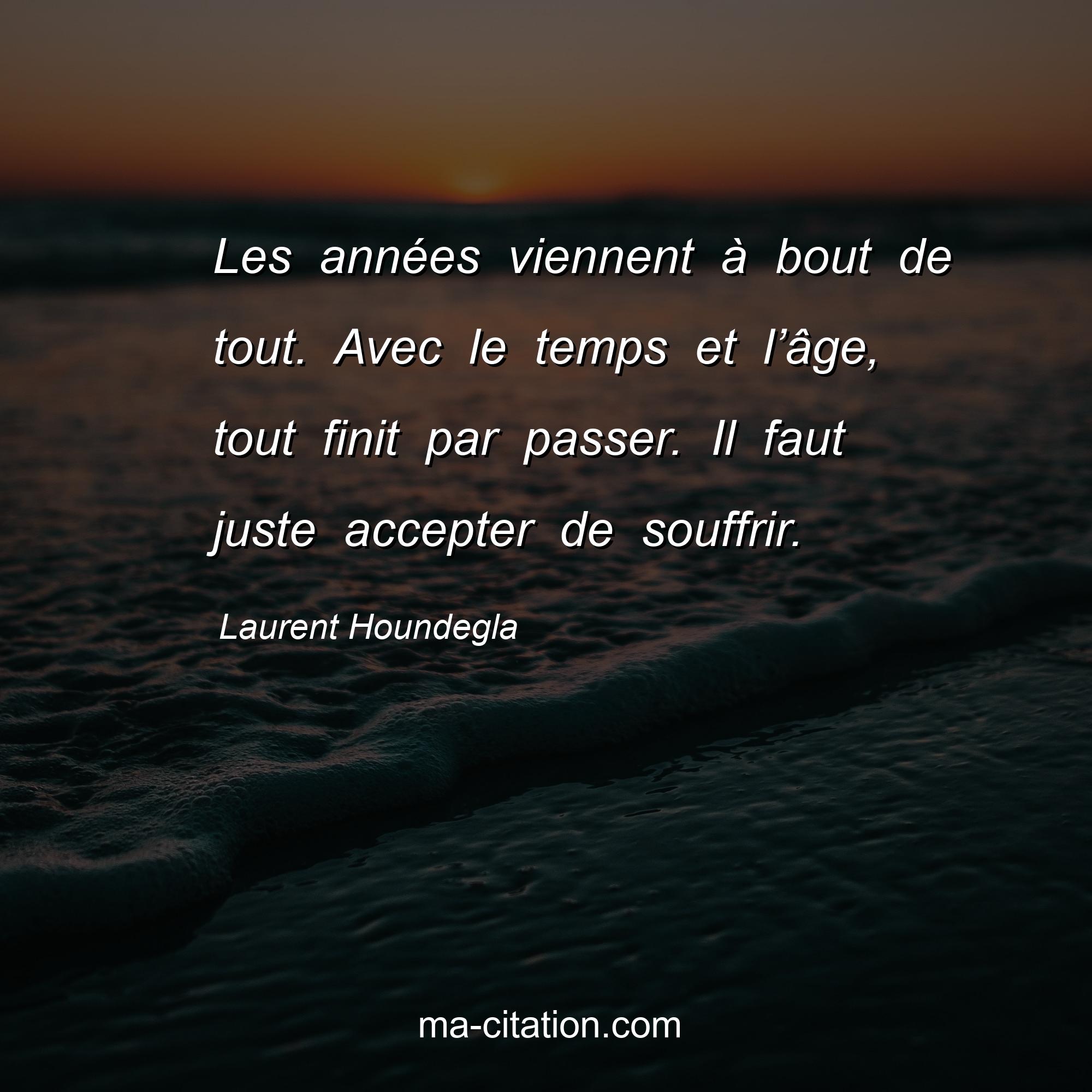 Citation sur la vie de Laurent Houndegla :Les années viennent à bout de tout. Avec le temps et l’âge, tout finit par passer. Il faut juste accepter de souffrir.