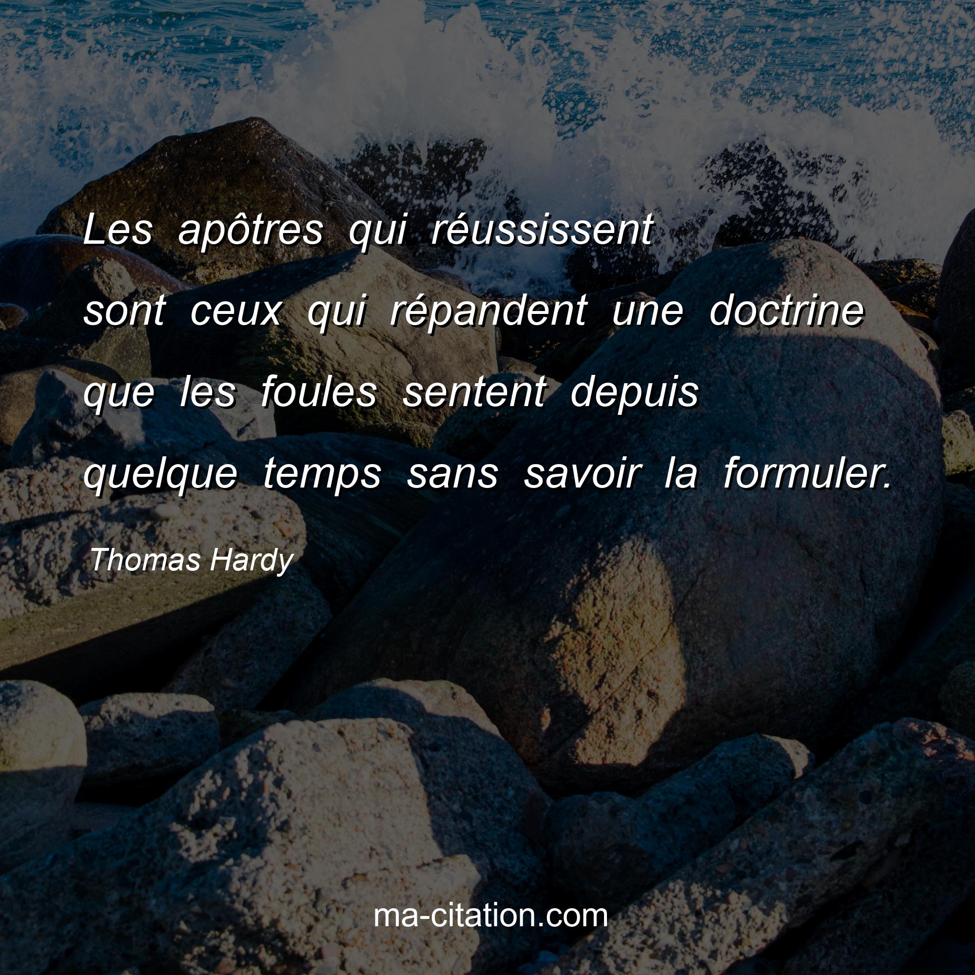 Citation sur la vie de Thomas Hardy :Les apôtres qui réussissent sont ceux qui répandent une doctrine que les foules sentent depuis quelque temps sans savoir la formuler.